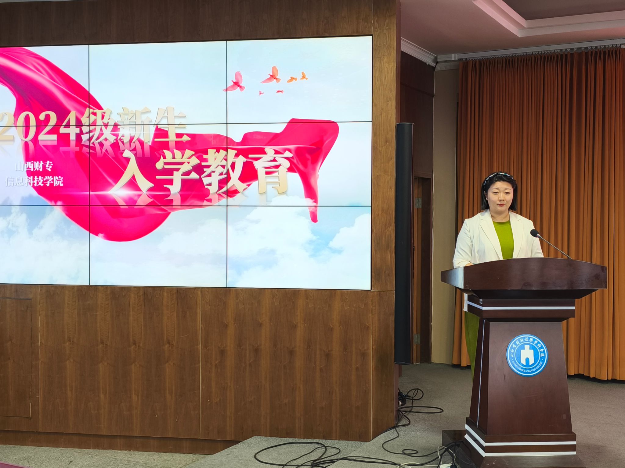 本次入学教育以“科技点亮青春,奋斗铸就未来”为主题。程瑞萍代表学院欢迎新同学的到来,介绍了学院的基本情况,并从学习态度、安全意识、身心健康、诚实守信等十一个方面给予新生具体的引导和建议,期望新生成为有担当和有创新能力的优秀人才。朱壮华从专业建设的角度介绍了学院数智赋能工作,鼓励新生要以青春力量勇攀科技高峰。柳菁围绕党建团学工作与新生进行了深入互动交流,希望新生能树立崇高理想,踊跃参与社会实践活动。李博具体介绍了学院分团委的情况,鼓励新生要积极参与,成为全面发展勇于担当的时代青年。