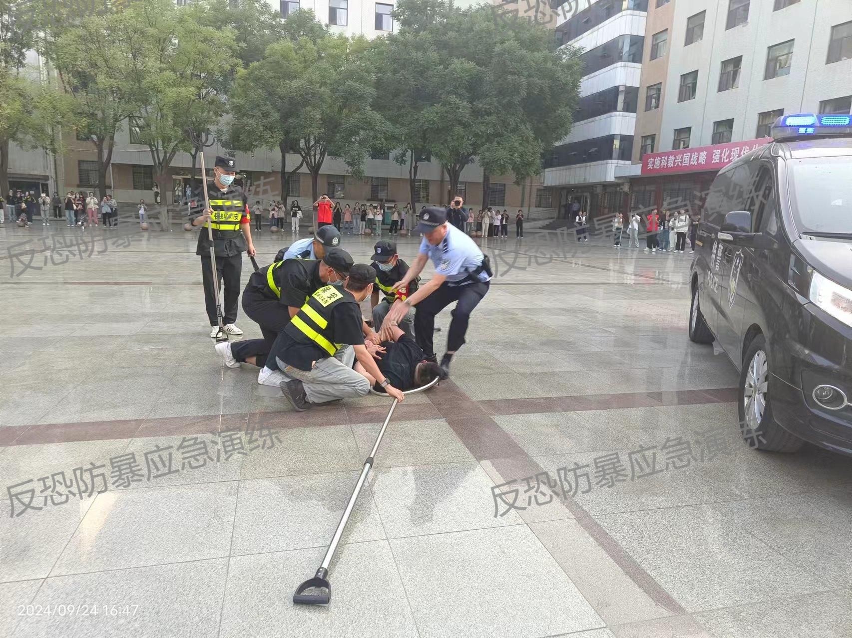 为进一步加强bat365安保人员面对突发暴恐袭击事件的防范意识和处置能力,切实保障师生人身、财产安全,维护校园安全稳定,9月24日下午,学校后勤保障部联合万柏林分局和平南路派出所开展了反恐防暴应急演练。