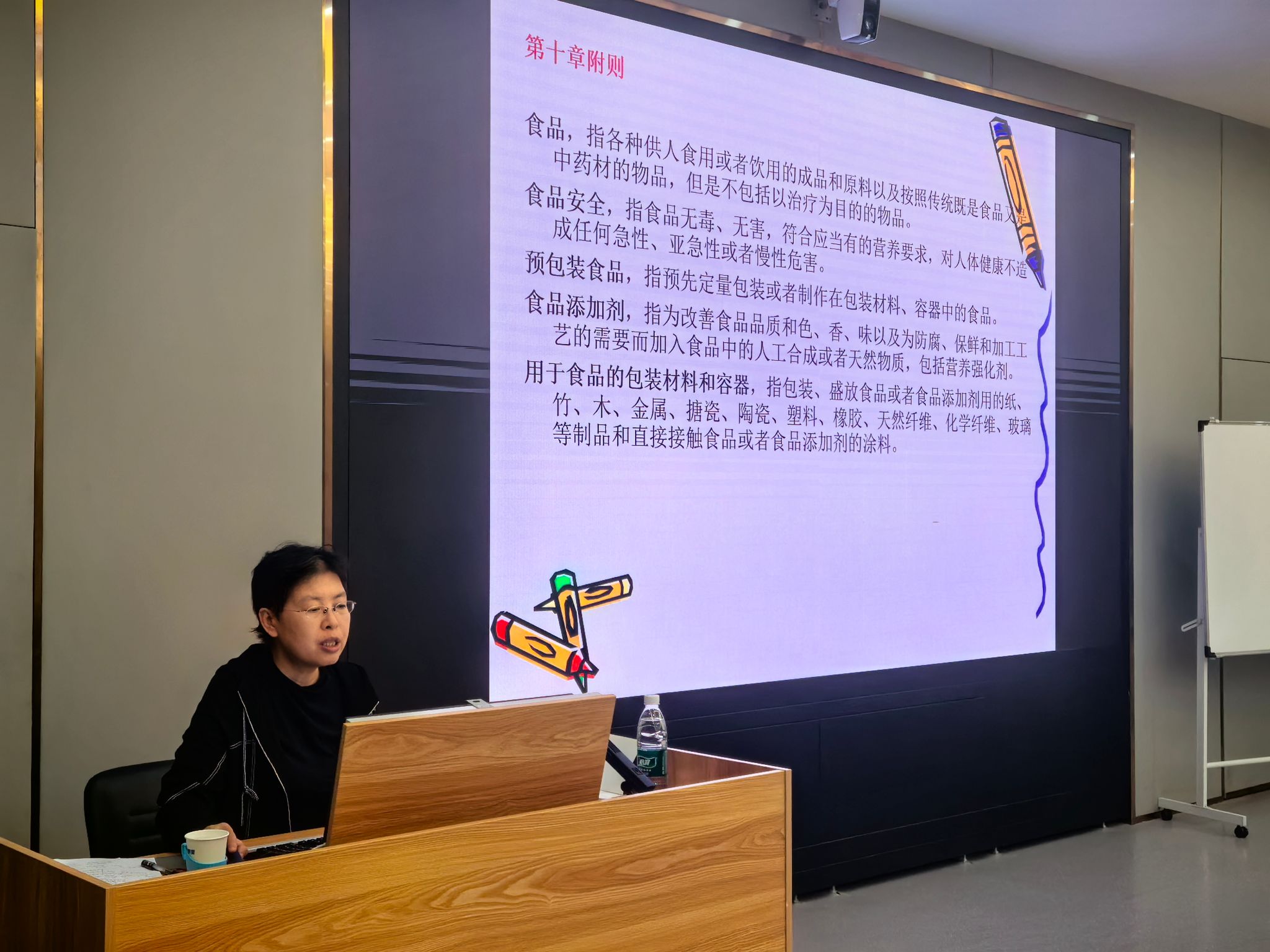 郝艳射以校园食品安全为主题,重点解读了《中华人民共和国食品安全法》,从法律法规、操作规范、风险防范、从业人员健康体检、食品安全自查等方面进行了培训,系统介绍了食堂日常管理、食品加工等工作中的风险要点、操作规范和卫生要求。