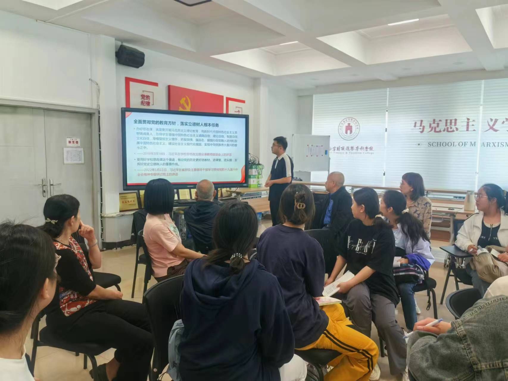为认真贯彻全国教育大会精神,深入聚焦思政课程课程思政的融合发展,扎实落实立德树人根本任务,9月24日下午,财税学院教师党支部与马克思主义学院党支部联合开展“上好思政课,当好引路人”主题党日活动。马克思主义学院负责人陈彪,财税学院党总支书记张希、院长张明珠、副院长李艳以及两个学院部分教师参加了活动。活动由马克思主义学院任梦格主持。