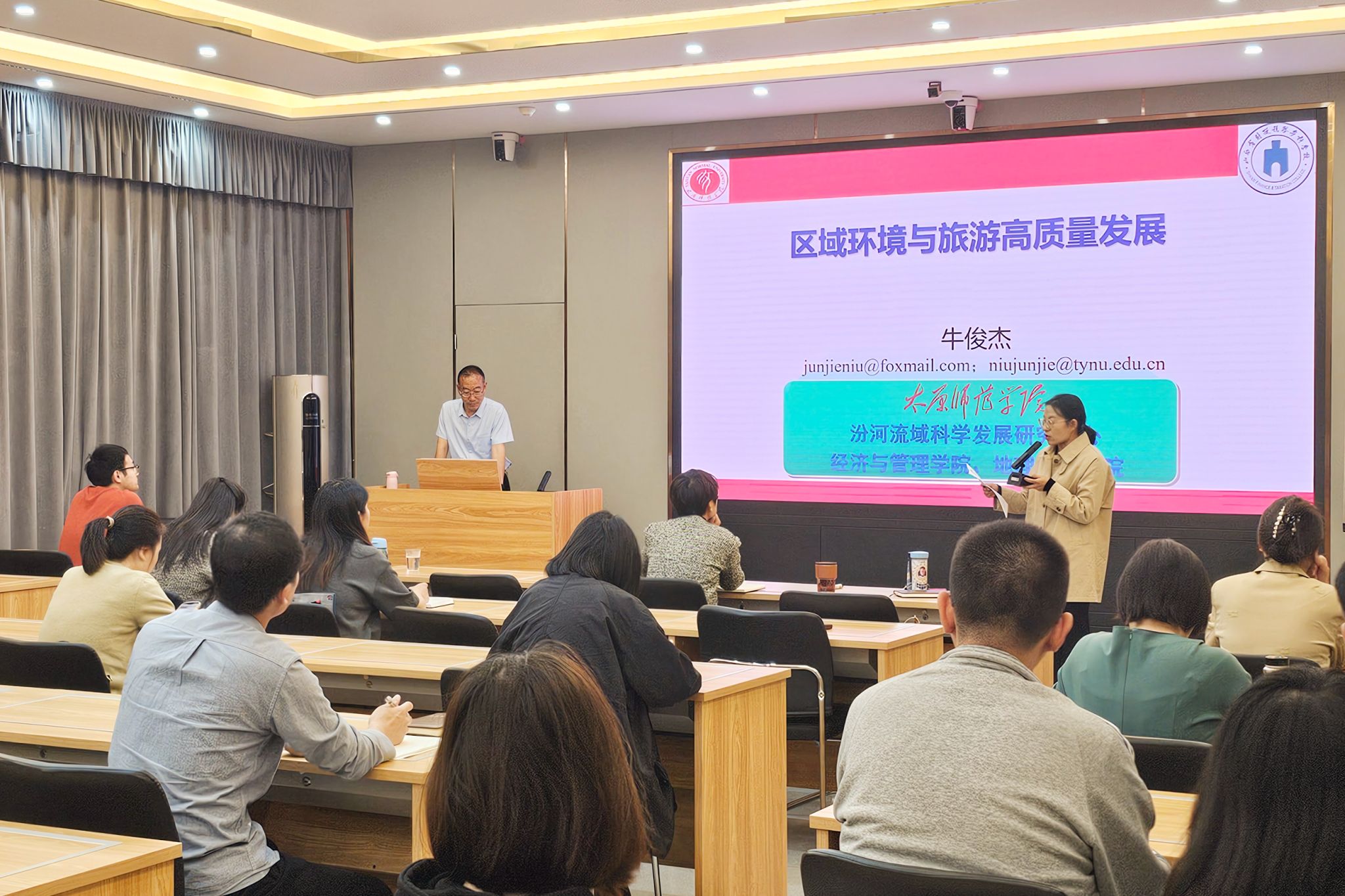 为深入探讨区域环境与旅游业发展的内在联系,推动旅游业及相关专业的高质量发展,10月8日下午,文化旅游学院在1103教室举办了以“区域环境与旅游业高质量发展”为主题的专题讲座。本次讲座邀请山西省普通高等学校人文社会科学重点研究基地-汾河流域科学发展研究中心主任、太原师范学院旅游管理旅游规划方向负责人、太原师范学院、山西大学、东北师范大学硕士生导师牛俊杰教授担任主讲嘉宾。
