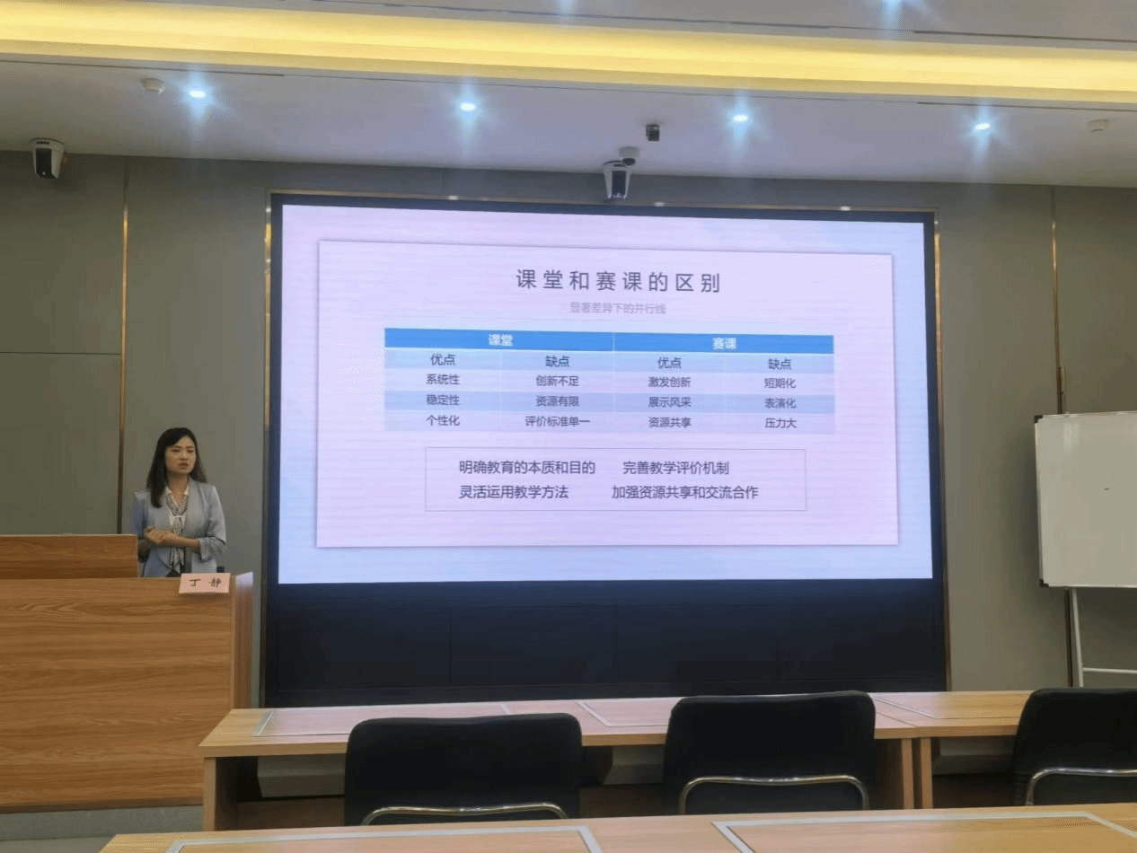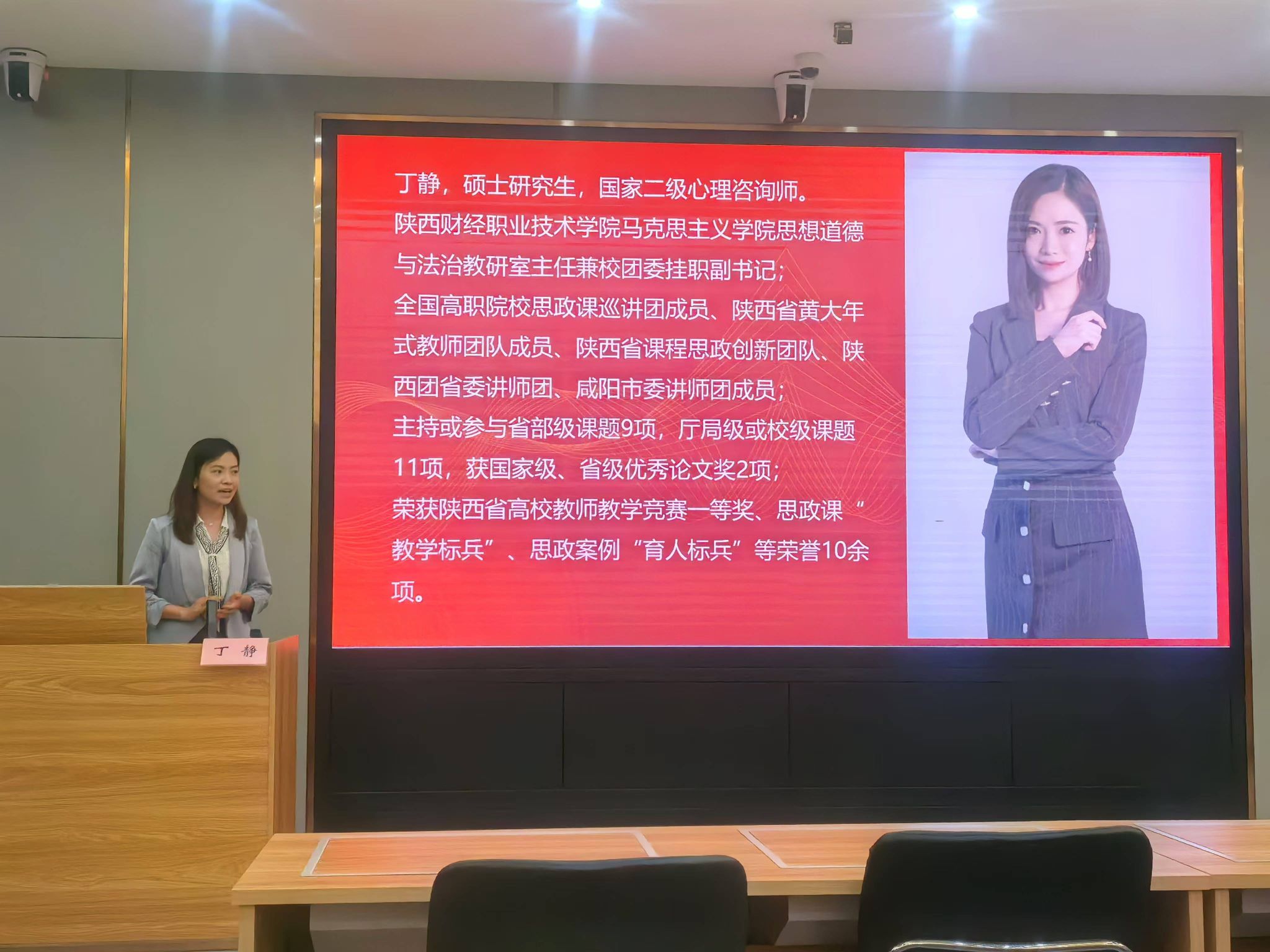 第一节课邀请到陕西省高校教师教学竞赛一等奖获得者、陕西财经职业技术学院马克思主义学院教师丁静,丁老师以“创新教学设计、打造品牌金课”为题,从教学竞赛的理论逻辑、教学竞赛的实践逻辑、教学现场展示以及教学设计分析四个方面进行了分享。大家深感:教学展示有学理、有情怀、有温度、有启发,特别是为青年教师的学习成长提供了可借鉴的样板。