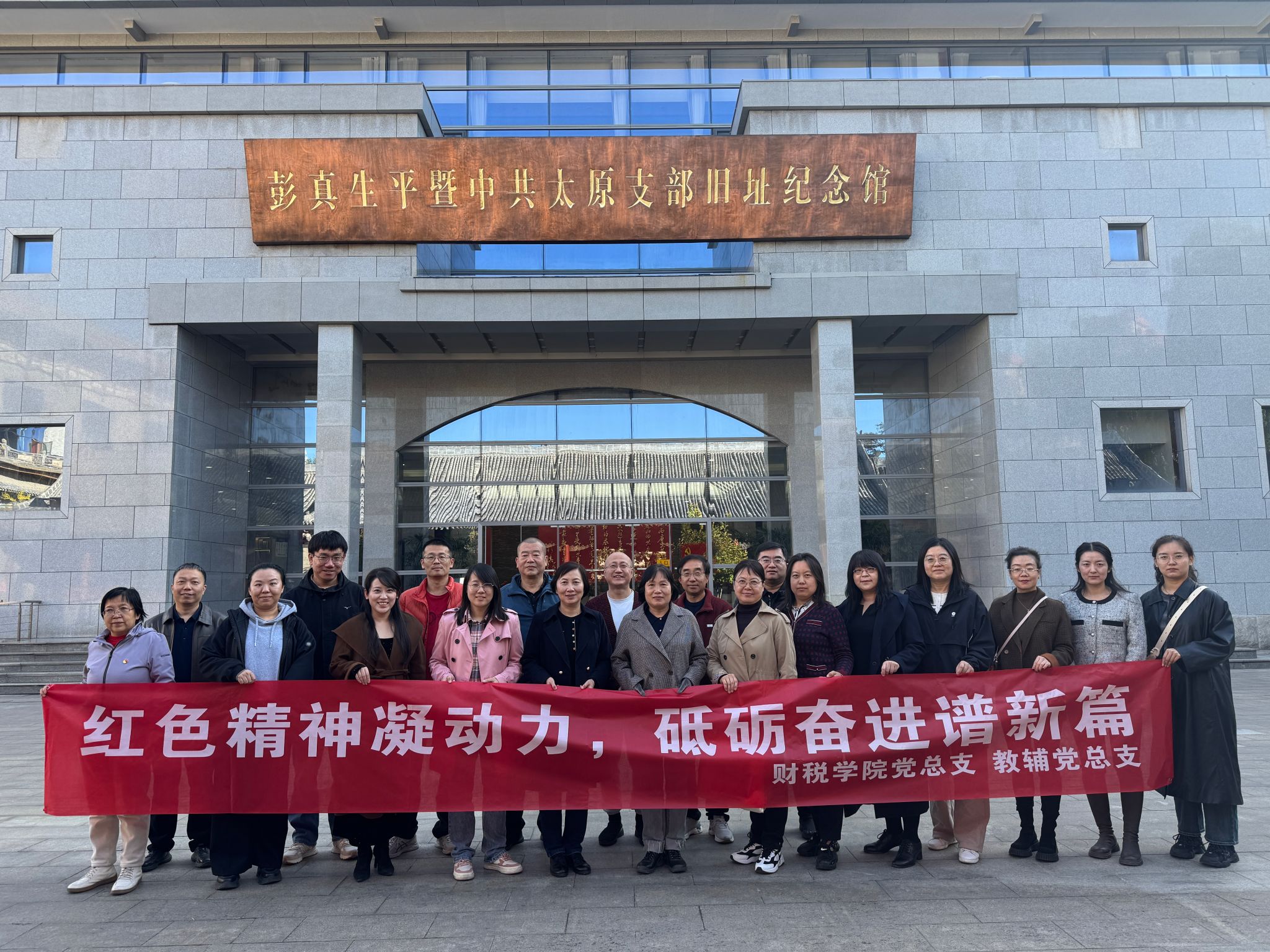 为深入贯彻党的二十届三中全会精神,进一步激发党员的爱国热情和奋斗动力,不断强化党支部战斗堡垒作用,推动党建工作和业务工作深度融合,以党员互动,活动互联为基础,以“红色精神凝动力,砥砺奋进谱新篇”为主题,财税学院党总支和教辅党总支于10月24日下午联合组织党员及入党积极分子,前往彭真生平暨中共太原支部旧址纪念馆,开展主题党日活动。