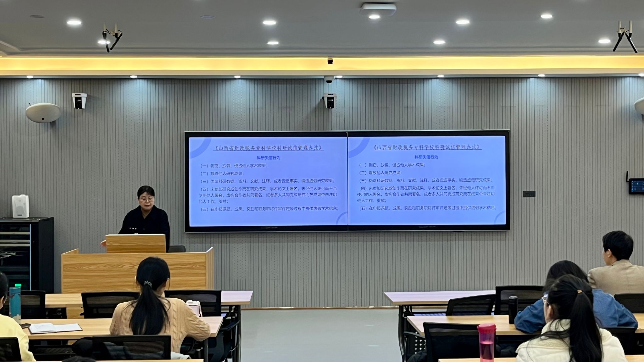 培训会上,国有资产管理中心主任王增德就科研项目中的设备采购相关事宜进行解读;财务部副部长韩伟杰为大家讲解了经费支出的财务规则及程序;田莉围绕科研项目经费管理办法开展了业务培训,强调了在科学研究过程中科研诚信建设的重要性。