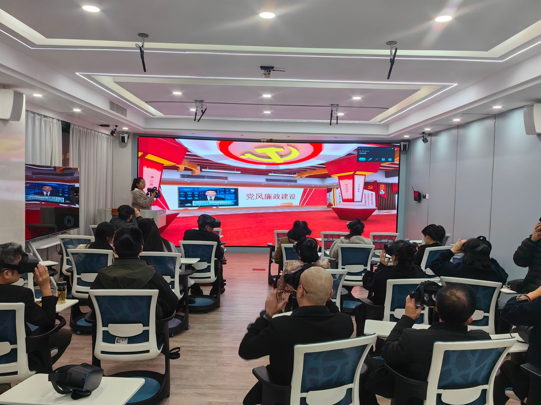 随后,贺拥军教授就如何运用法治思维推动改革发展作了分享交流。他为大家解读了法治思维在新时代背景下的应用与发展,强调了法治思维对于党员领导干部的重要性。马克思主义学院毛丹丹老师利用VR眼镜带领党员们“身临其境”般进入党风廉政建设展厅,大家以新颖的学习方式深入了解党风廉政建设的重要性和实施路径。数智时代的技术应用,不仅让党员们对党风廉政建设有了更加直观的感受,也增强了党员们对数字化手段在党内教育中应用的认识,使得党风廉政建设教育更加深入人心。