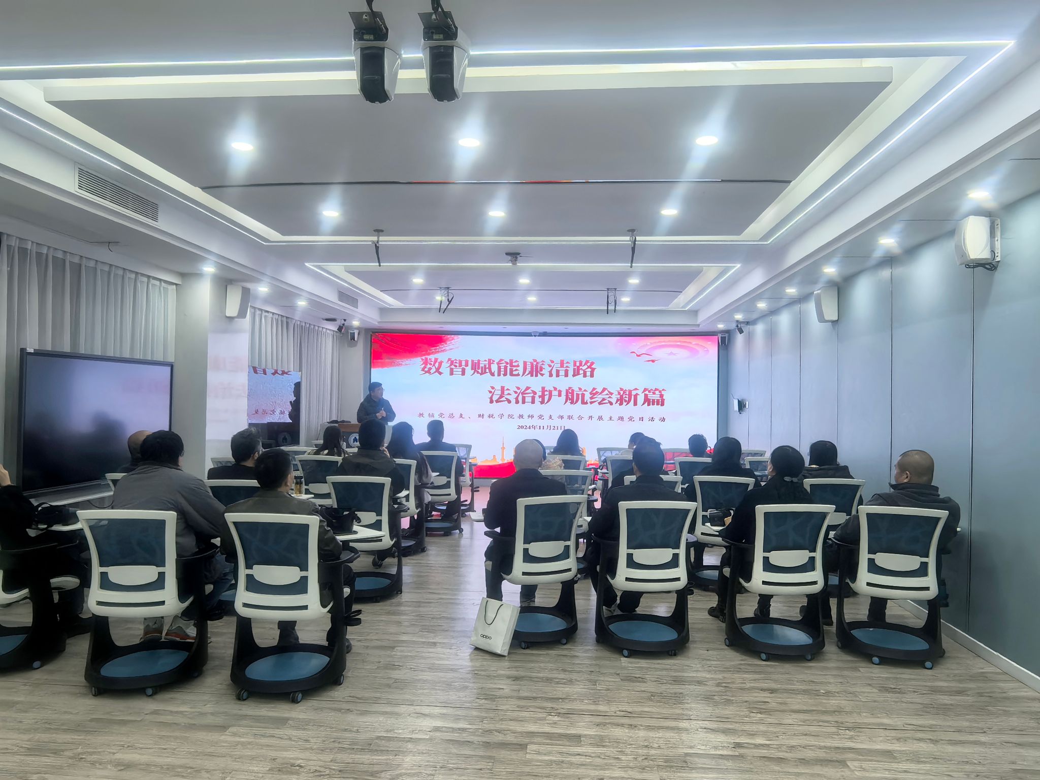 为了深入贯彻落实习近平总书记关于全面从严治党的重要讲话精神和全面依法治国的重要论述精神,进一步加强党性教育和党风廉政建设,提升党员法治思维和法治素养,加强数字化手段在党内教育中的运用。11月21日,教辅党总支和财税学院教师党支部联合开展“数智赋能廉洁路,法治护航绘新篇”主题党日活动。