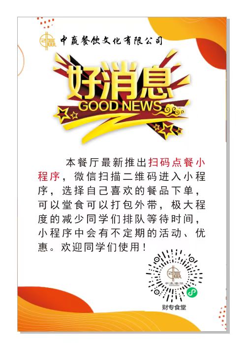 为推广线上点餐小程序,11月21日、22日,后勤保障部联合中赢餐饮有限公司在南校食堂举办“扫描点餐小程序,幸运转盘抽奖”活动,丰富的奖品吸引了众多的同学们参与。