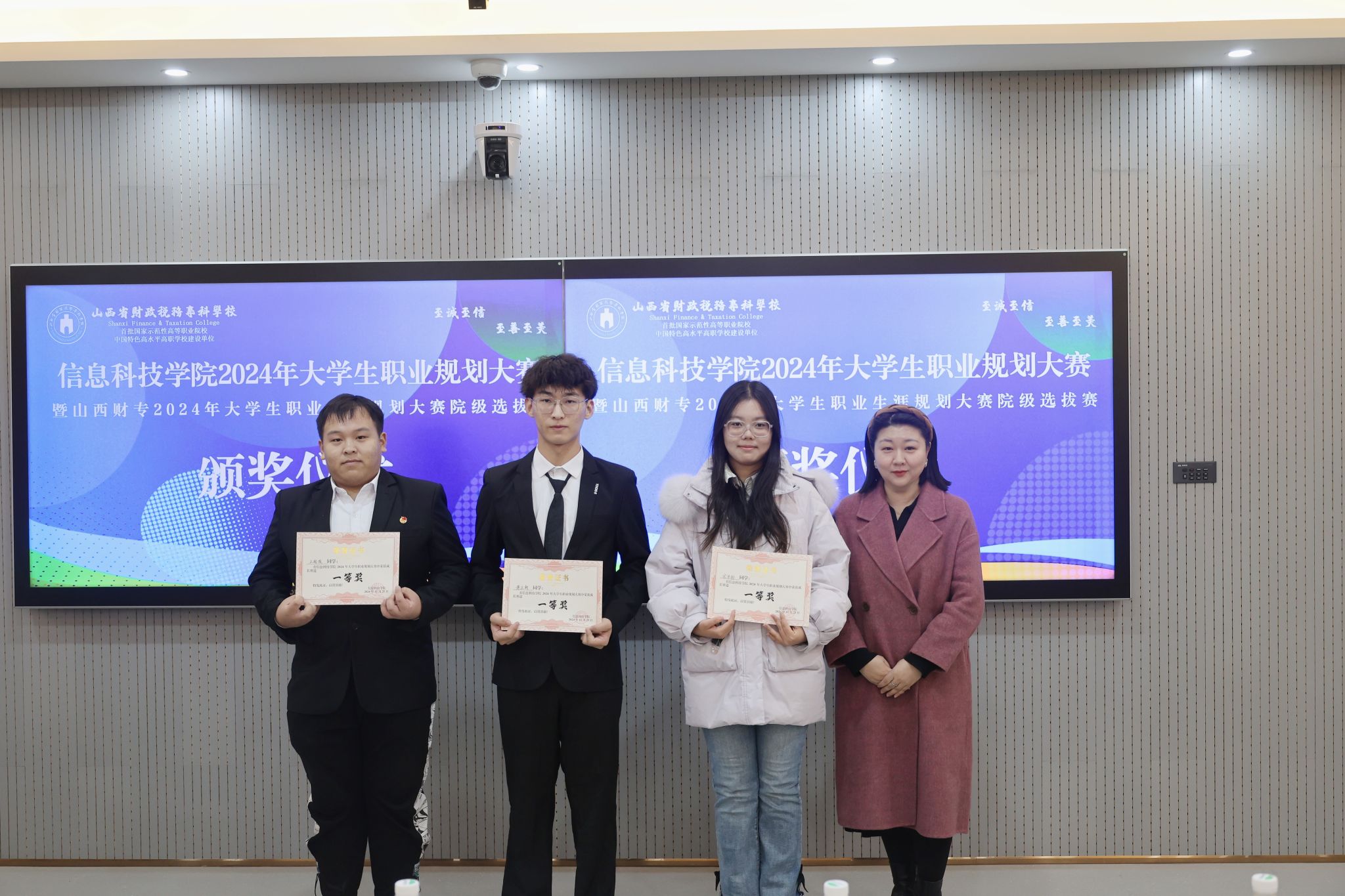 为进一步深化学生职业生涯教育大课堂、搭建人才供需对接大平台、服务毕业生就业大市场,11月25日下午,信息科技学院在1411教室隆重举办了2024年大学生职业规划大赛。信息科技学院党总支书记程瑞萍、党总支副书记柳菁、分团委书记李博及辅导员张瑞担任本次比赛评委。