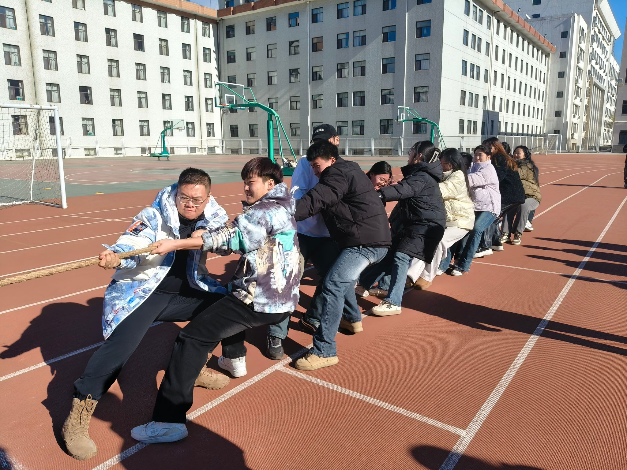 冬日霜寒、西风凛冽,运动场上的选手们斗志昂扬,热情高涨,在震耳欲聋的加油呐喊声中凝心聚力一根绳、斗智斗勇同进退,广大学子们的呐喊声、欢呼声响彻校园冬日上空!经过为期四天的初赛、复赛和决赛的激烈比拼,2023级酒店管理与数字化运营一班勇夺桂冠,2024文化创意与策划班屈居亚军,团学干部代表队则获得了第三名的好成绩。