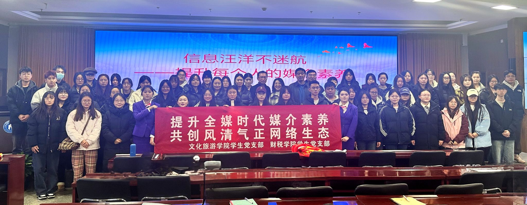 文化旅游学院学生党支部和财税学院学生党支部联合举办此次主题党日活动,旨在加强学院意识形态建设,守好意识形态主阵地,不仅增强了两个学院学生党员之间的交流与合作,也进一步提升了学生们的思想政治素质和媒介素养。未来,两个学院将继续携手共进,共同为培养更多有时代使命感和担当意识的优秀人才贡献力量。