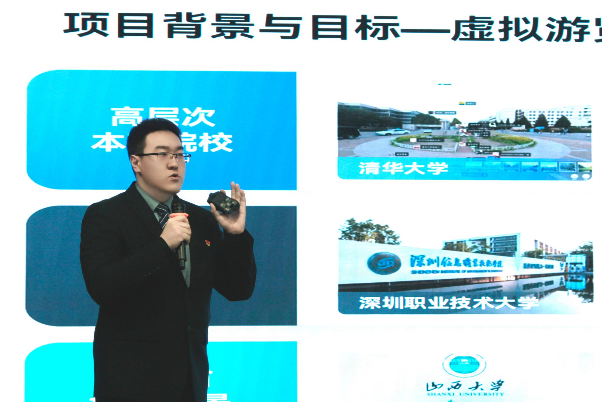 接着,IT职业技能大赛正式开始,本次大赛以“七十五载迎盛世,砥砺前行续华章”为主题,包括计算机基础知识比赛、PPT制作、微电影展示、网页设计和院徽设计等多个赛项,参与范围覆盖全院九百余名学生。各项比赛过程中,同学们充分运用所学知识制作了参赛作品,展示了信息科技学院学子扎实的专业功底。参赛选手们紧扣比赛主题,巧妙地把比赛精髓与红色教育相互融合,展现出信息学子爱党爱国情怀。此次比赛中,贾宇翔同学向全院展示了“云上游校园”程序,该程序借助对校园地图的直观呈现,生动地展现出学校深厚的历史文化底蕴,以此辐射并激励更多的同学在新时代背景下,成长为怀揣理想、勇于担当、不畏艰难、不懈奋斗的新时代青年。