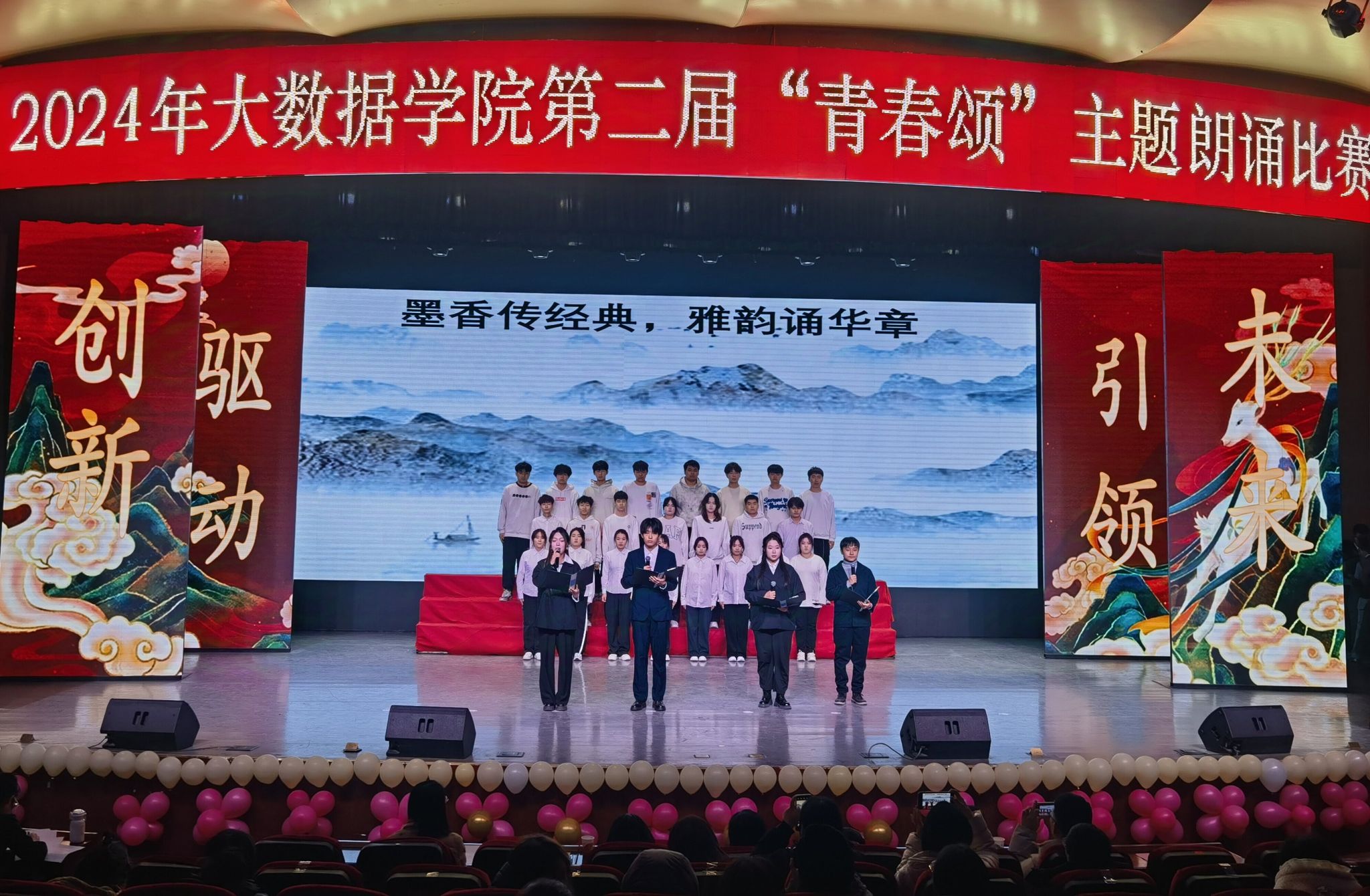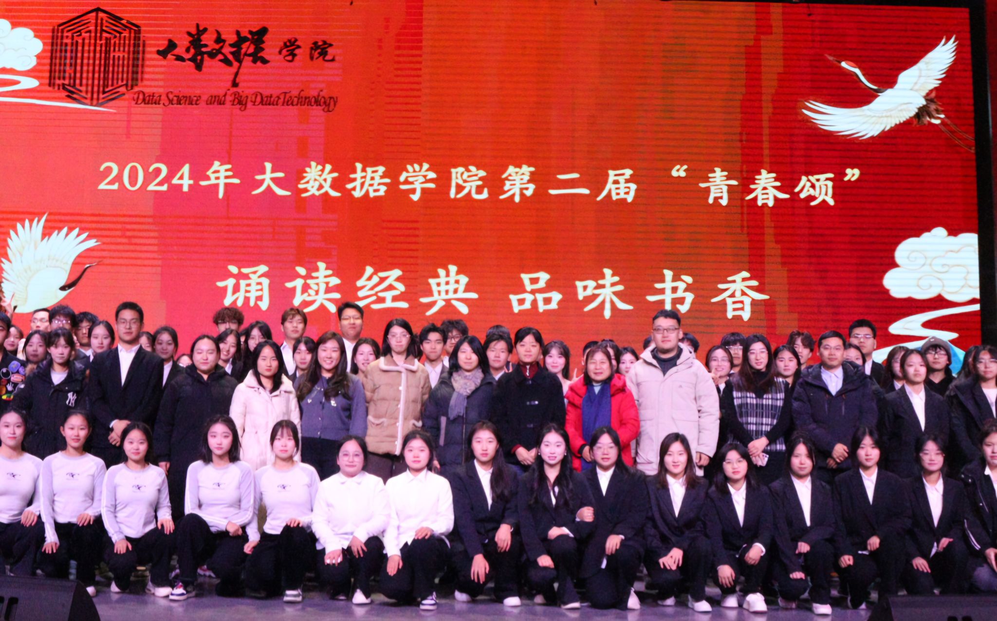 为深入贯彻落实党的二十届三中全会精神,深入贯彻落实习近平文化思想,强化中华传统经典和红色经典阅读,引导学生在吟咏诵读中接受中华经典文化滋养,增强文化自信,坚定理想信念,12月18日大数据学院在礼堂举办“诵读经典 品味书香”第二届“青春颂”朗诵比赛。大数据学院党总支副书记张建英,副院长蔺建霞、宋金沙,分团委书记石雅丽,学院教师吴春叶、畅炳陆、孟庆瑜担任评委,各班辅导员及全院600多名在校学生观看了比赛。