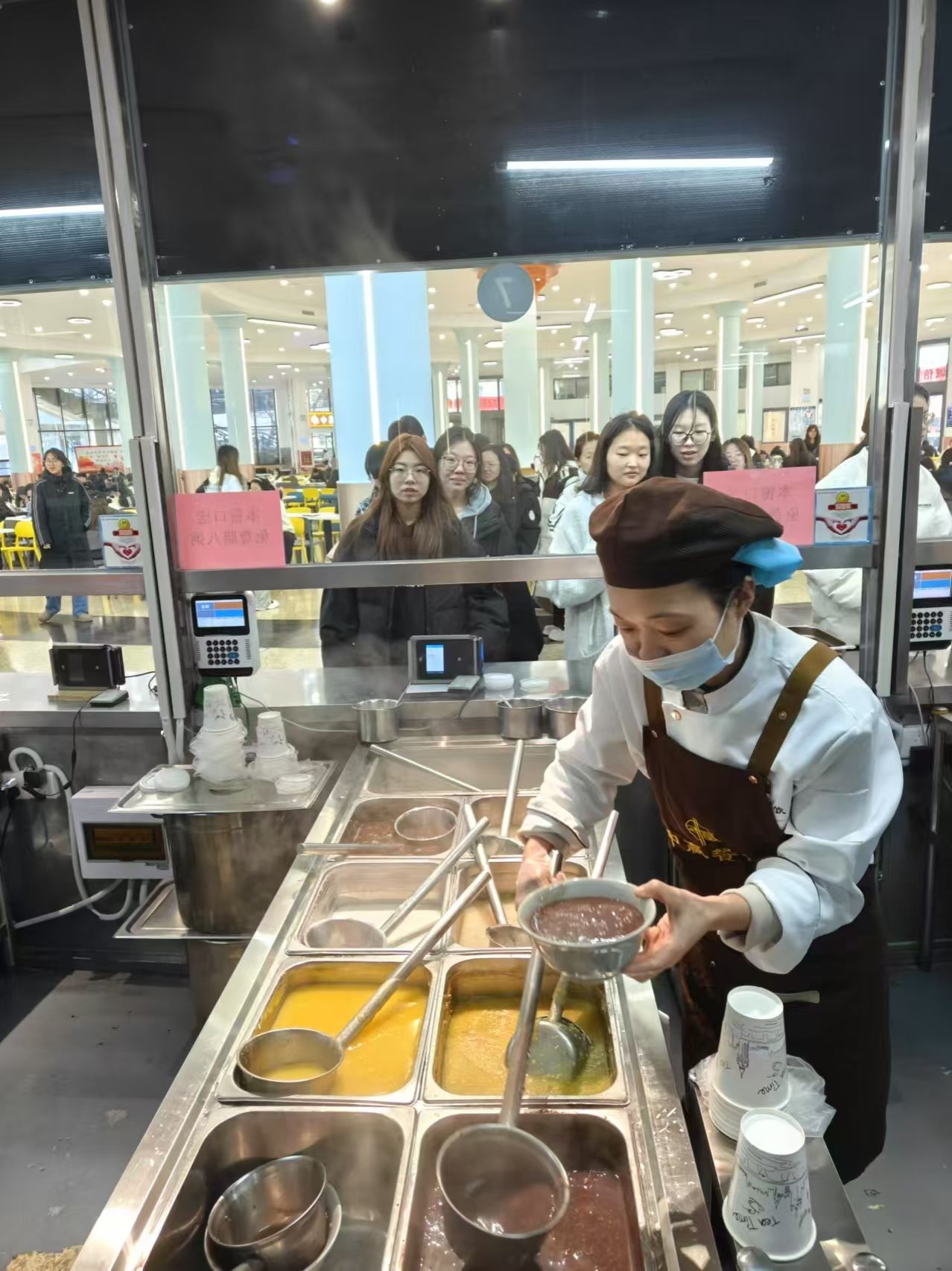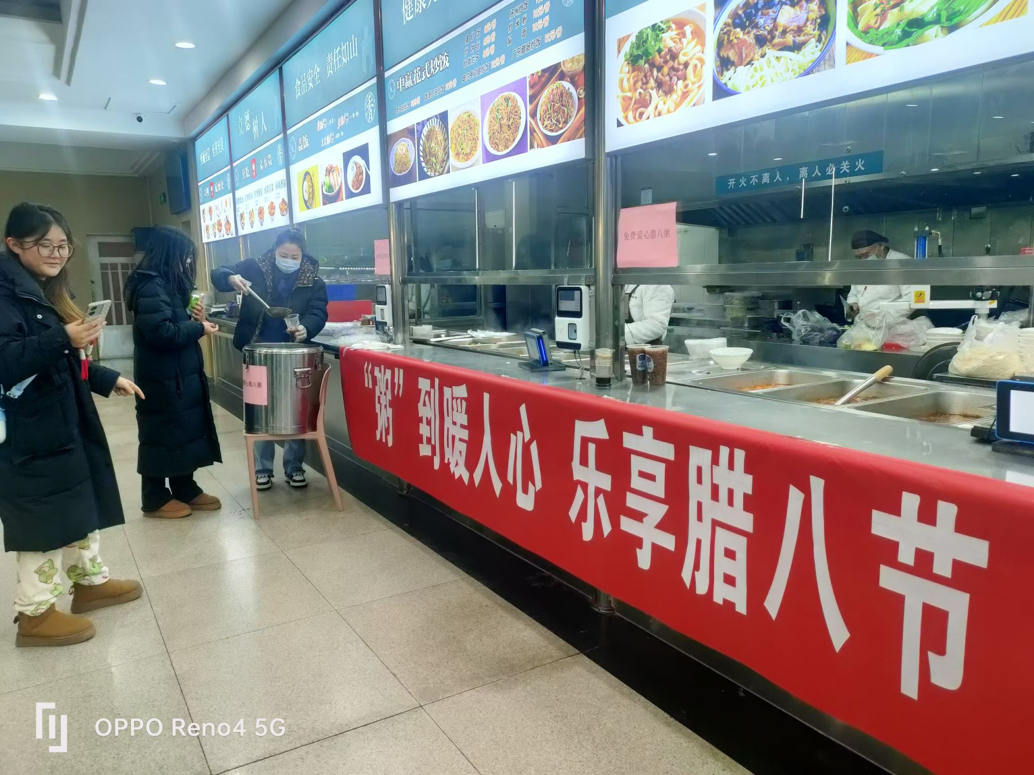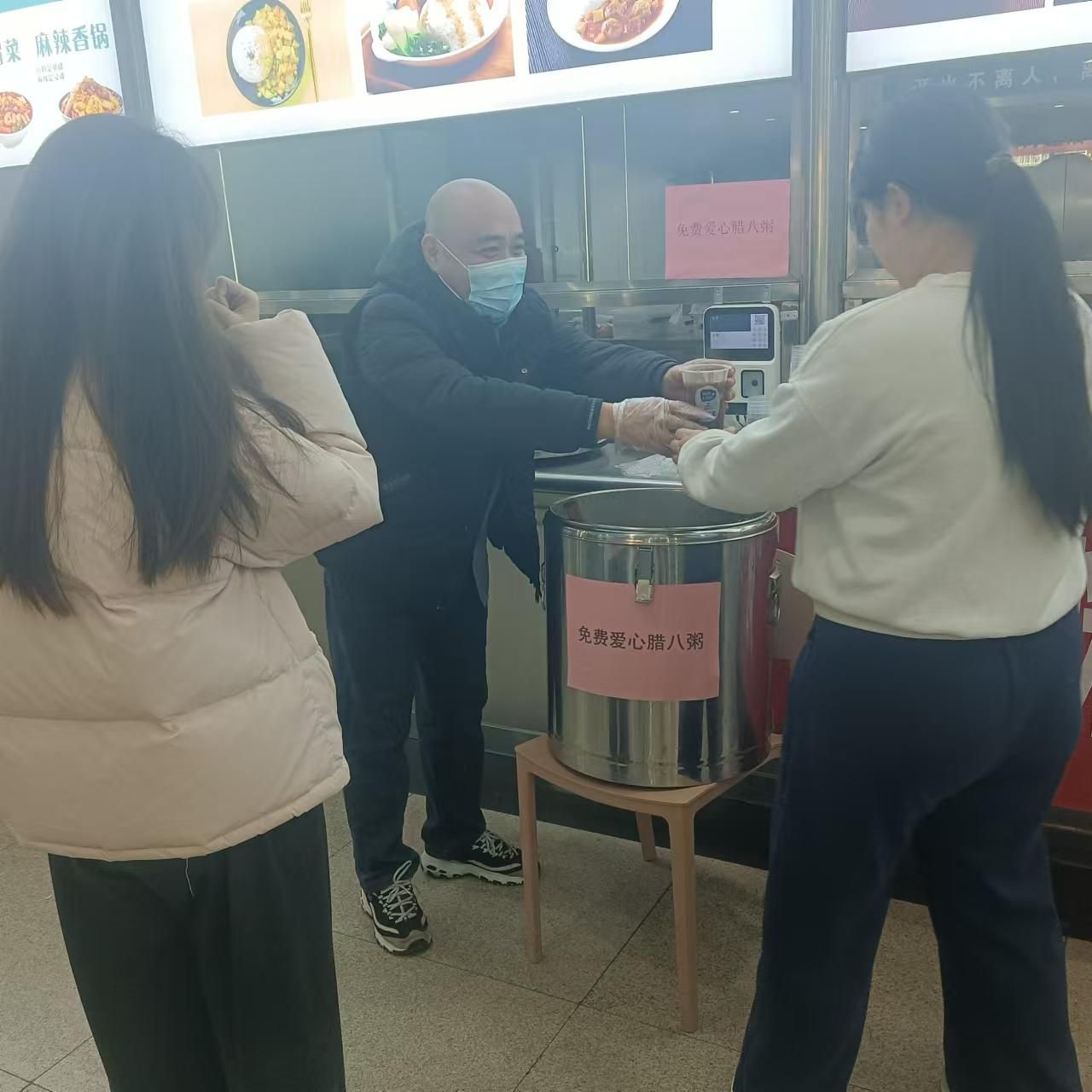 1月7日,时值农历腊月初八,后勤保障部联合中赢餐饮有限公司在食堂向就餐的师生免费提供腊八粥。