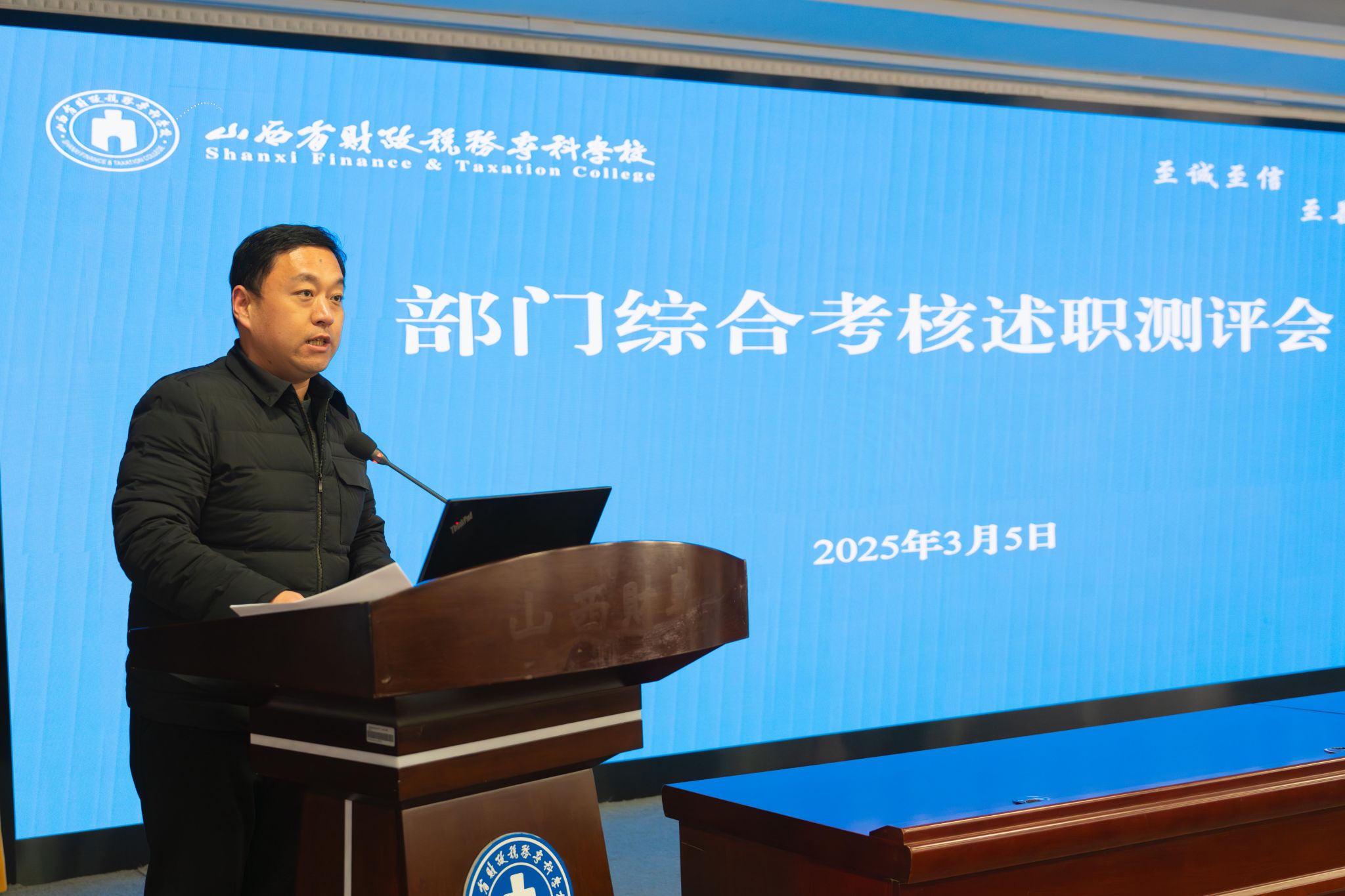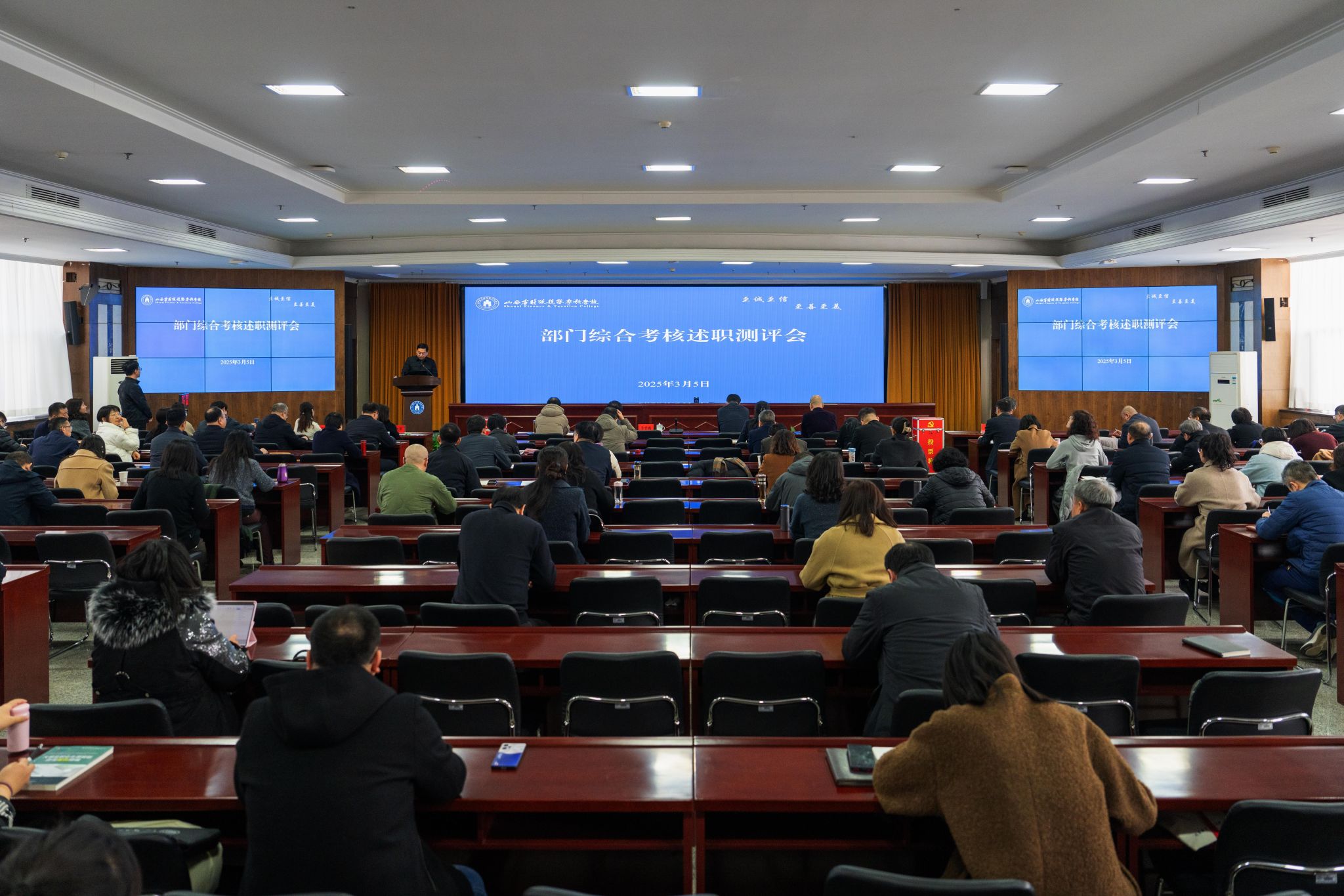 3月5日,bat365在1号教学楼7层会议室举行2024年度部门综合考核述职测评会。学校领导班子成员和全校副科级以上干部参加会议。会议由党委副书记、校长李赟鹏主持。
