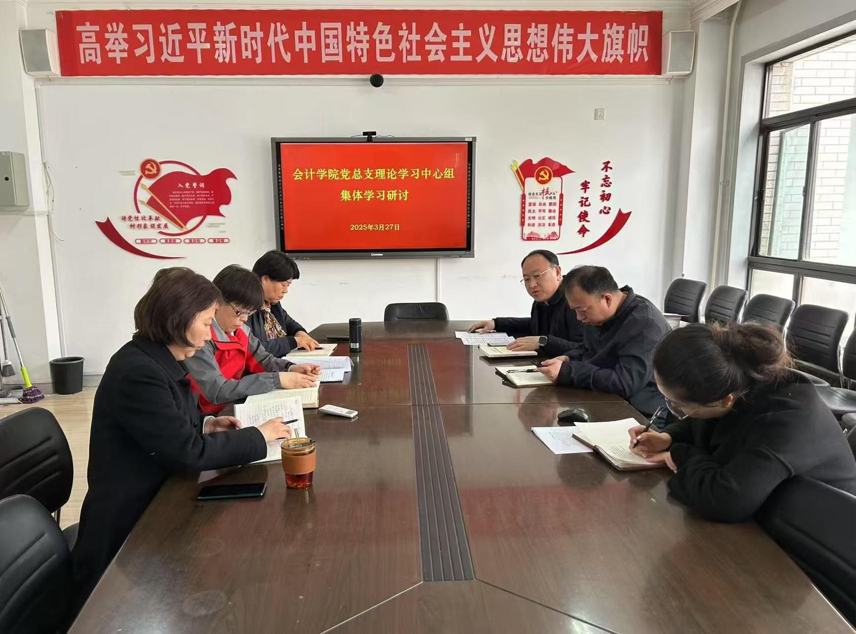 3月27日,会计学院党总支理论学习中心组在学院120会议室召开集体学习会,中心组成员参加学习。会议由党总支书记赵云主持。