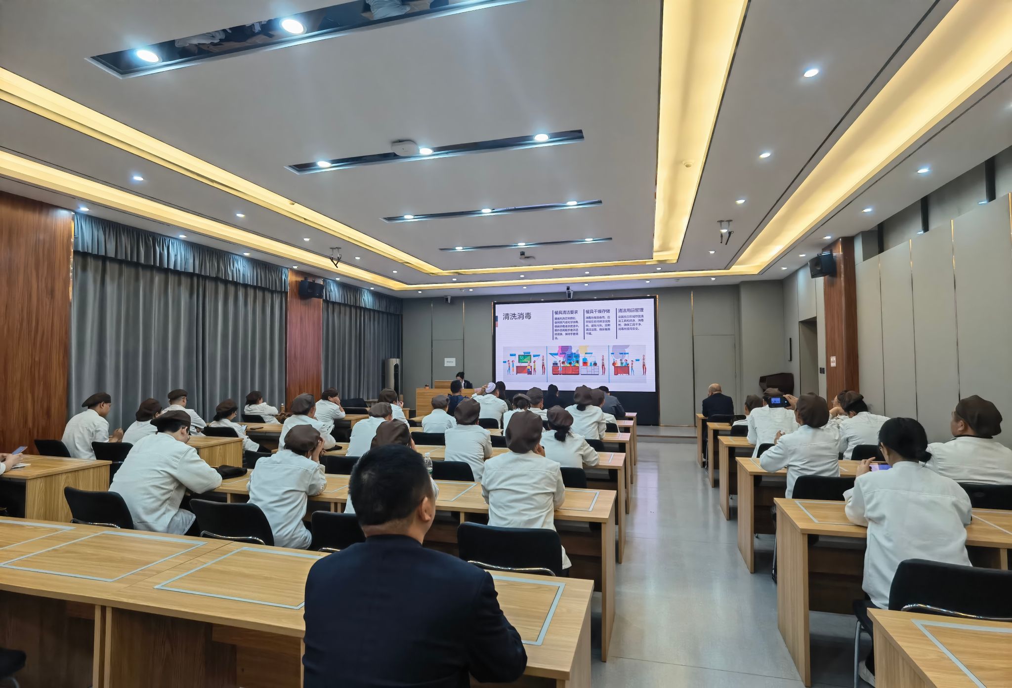 卫生所医生卢琦针对bat365“食堂人群密集、食源风险点多”的特性,通过图文结合,重点讲解了食品原材料采购及储存、进货查验、加工制作、清洗消毒、餐厨废弃物处置等方面的知识。强调“早发现、早阻断、早处置”的重要性,并针对食堂重点区域提出消杀通风、防鼠灭蝇等具体建议。本次培训食堂从业人员50人参与,现场考核通过率达100%。