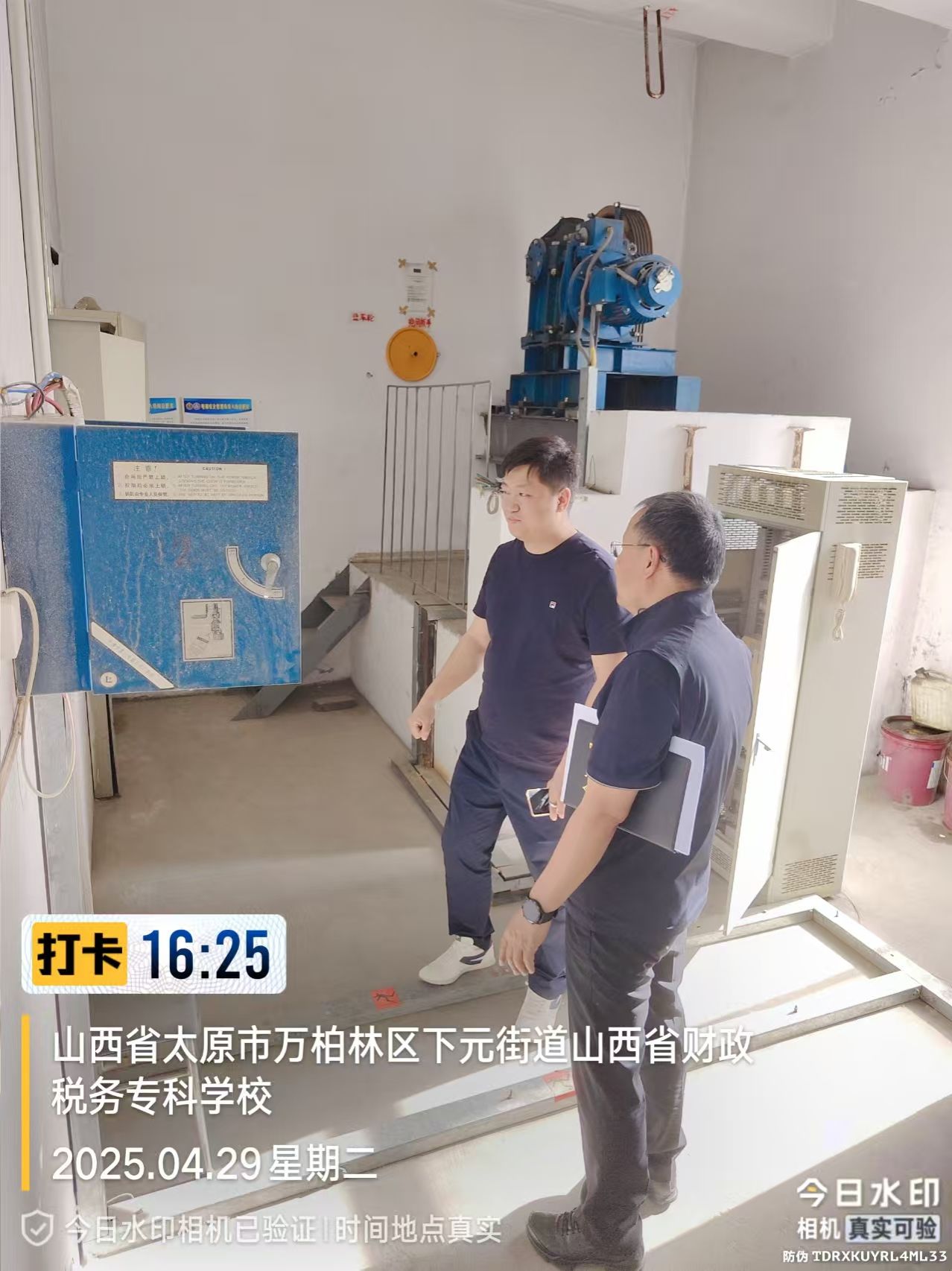 检查组深入教学楼、体育馆、图书馆、实验室、学生公寓、食堂、电梯机房、消防水箱间、快递站、北校区施工现场等人员密集场所和重点区域,重点排查消防设施是否完好有效、疏散通道是否畅通无阻、电气设备是否存在安全隐患。在食堂,仔细检查了燃气管道、炉灶设备、食品储存环境等;对学生公寓,认真查看水电线路、门窗锁具、消防器材配备情况。同时,对校园内的电梯、消防监控室和配电室内特种设备也进行了严格检查。