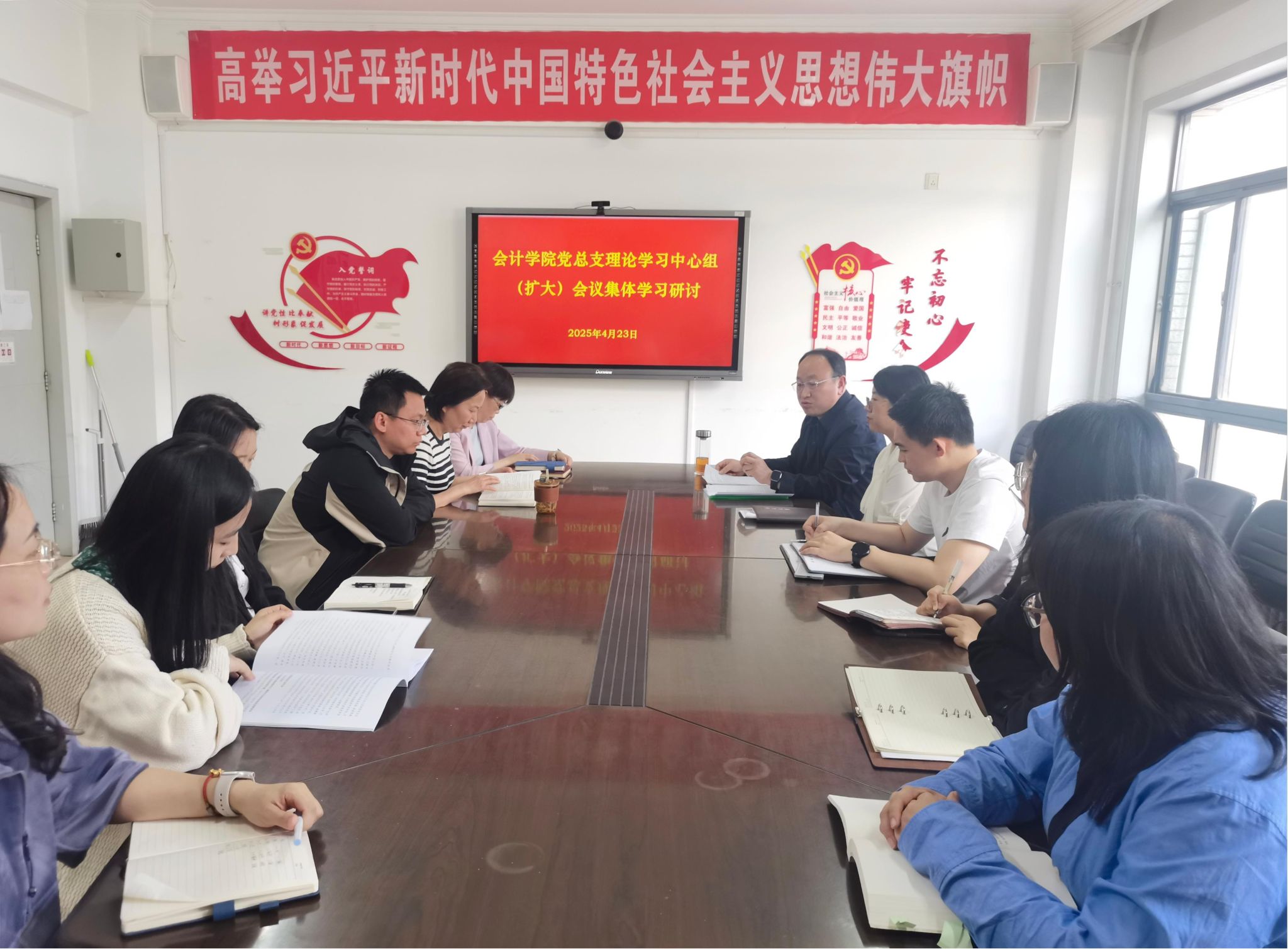 4月23日下午,会计学院党总支理论学习中心组(扩大)在学院120会议室召开集体学习会,中心组成员及所属四十岁以下青年干部参加学习。会议由党总支书记赵云主持。