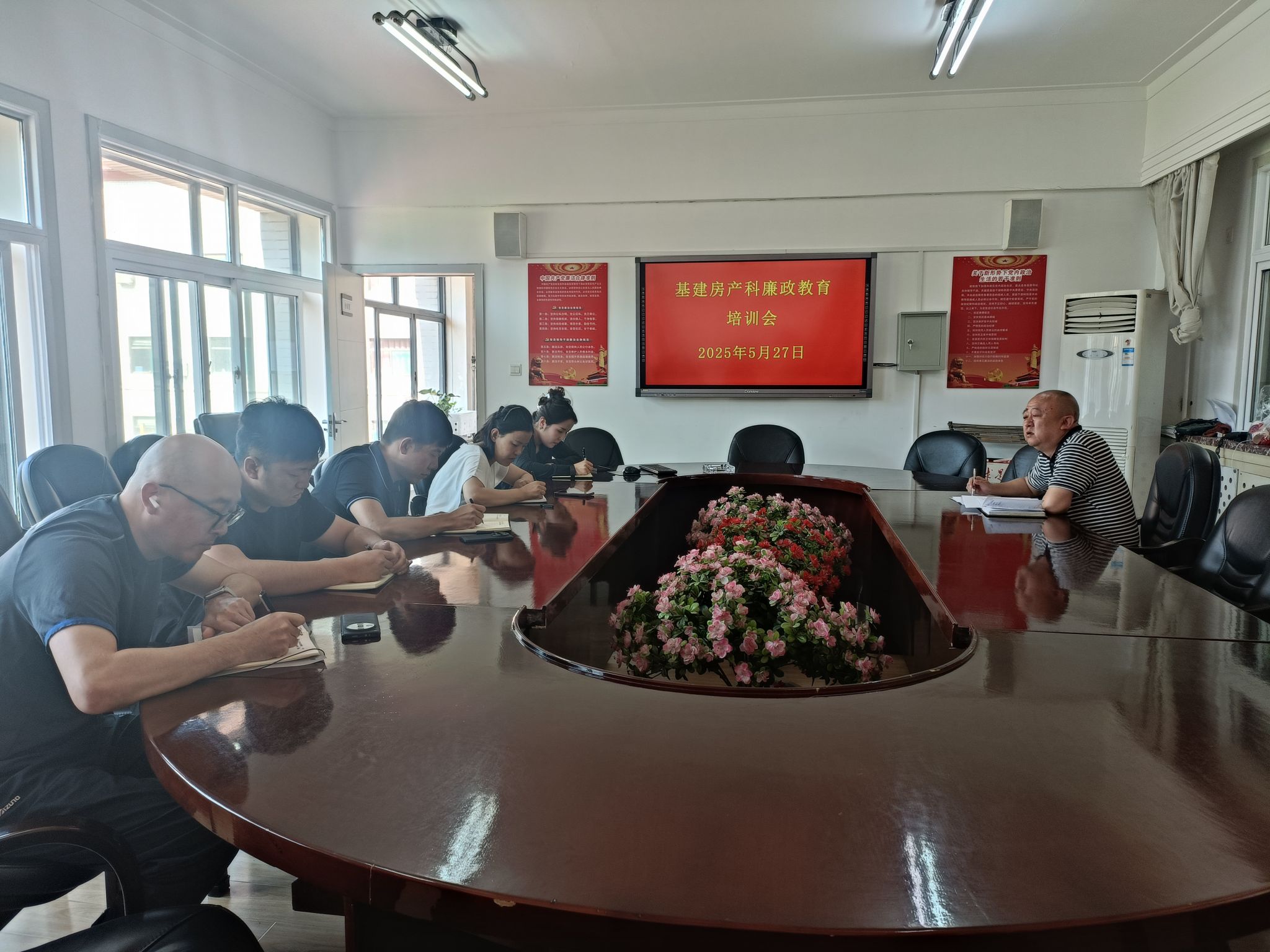5月27日,后勤保障部组织召开廉政教育培训会。后勤保障部部长张坤鹏主持会议并讲话,基建房产科全体职工参加培训。