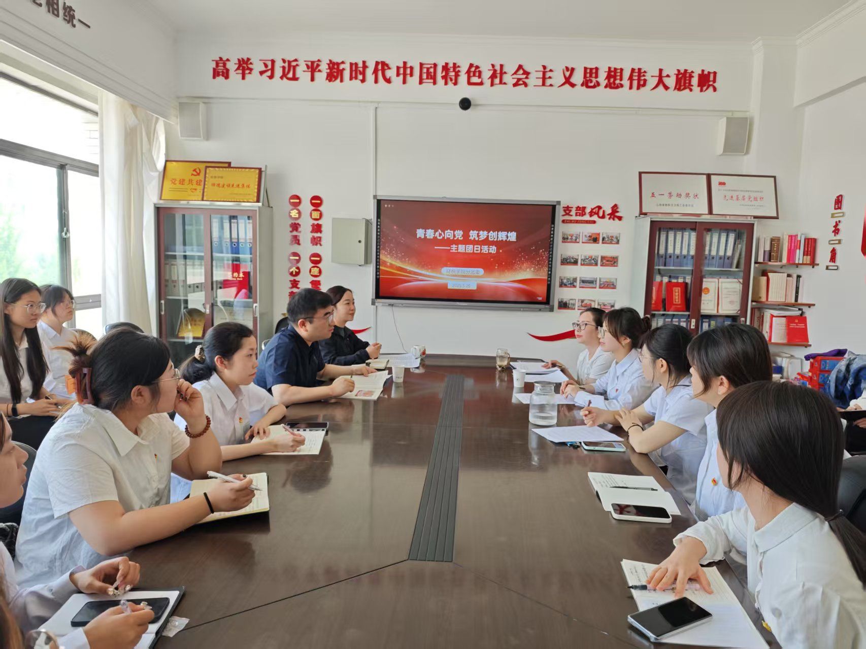 青春逢盛世,奋斗正当时。为深入学习贯彻习近平总书记对青年工作的重要指示精神,汲取榜样力量,激励青年学子在中国式现代化建设中勇担使命,5月26日上午,财税学院分团委在学院330会议室举办“青春心向党 筑梦创辉煌”主题团日活动。财税学院党总支书记张希、校团委负责人段凌燕出席,财税学院学生科长(分团委书记)范芹主持,学院优秀团员代表参与此次活动。