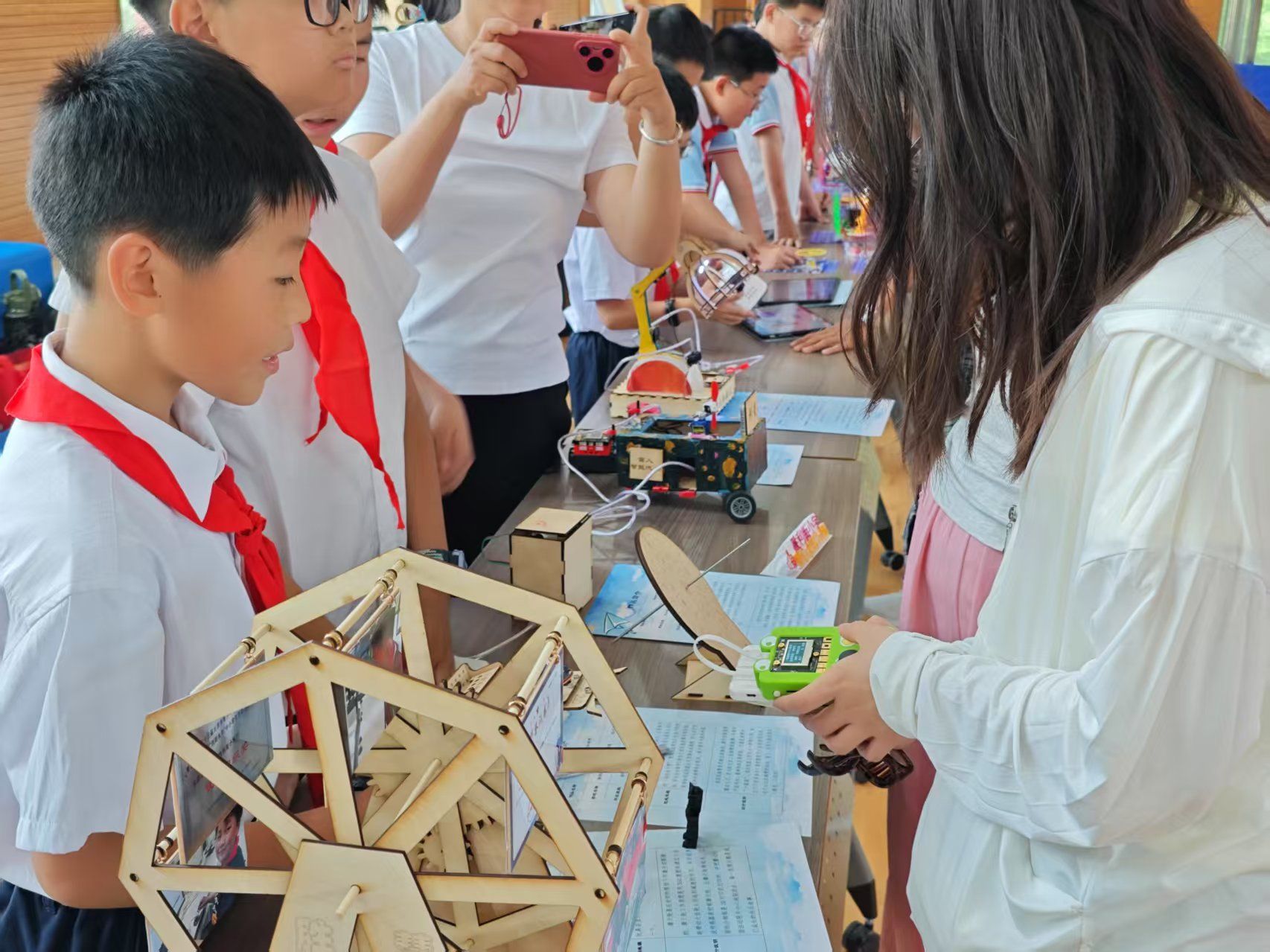活动中,化工路小学的学生们便以一场别开生面的科技手工秀,展现了他们非凡的创造力与想象力。一件件充满童趣又蕴含科学原理的手工作品,引得在场师生连连称赞。从简易的太阳能风扇到创意十足的机械装置,每一件作品都凝聚着孩子们对科学探索的热爱。