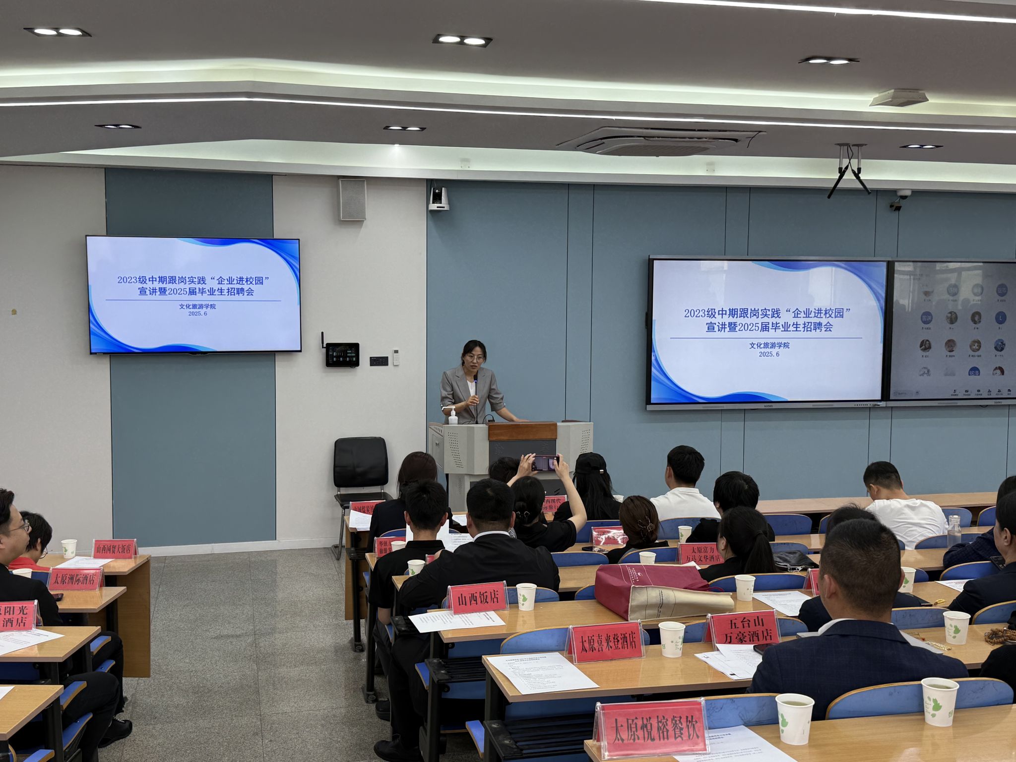 为进一步深化产教融合、校企合作,拓宽学生实习与就业渠道,搭建企业与学生双向选择的优质平台,6月6日,文化旅游学院在阶教307举办2023级中期跟岗实践“企业进校园”宣讲暨2025届毕业生招聘会。本次招聘会共有3场,邀请了包括国际高端酒店集团、头部旅行社、会展策划龙头企业在内的21家单位参与,为旅游管理、酒店管理与数字化运营、会展策划与管理3个专业的304名学生搭建了校企对接的桥梁。