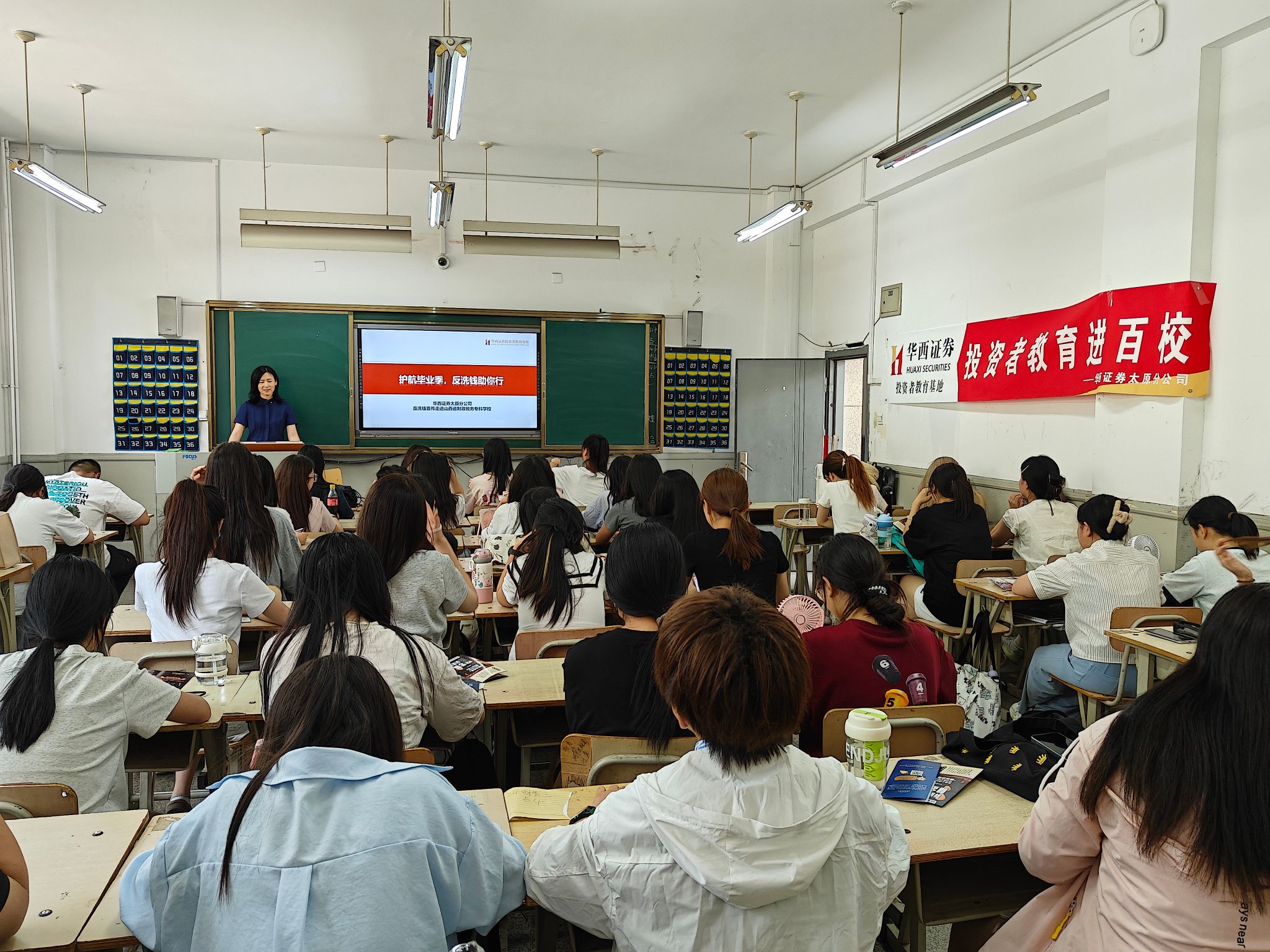 为切实加强学生诚信教育,提升防范电信诈骗、远离洗钱陷阱及金融风险的意识和能力,进一步加大校园金融安全宣传力度,6月9日下午,财税学院联合华西证券太原分公司在2号教学楼104教室成功举办“护航毕业季 反诈反洗钱”专题宣讲会。活动特邀华西证券投资者教育基地资深讲师高晶担任主讲,为即将步入社会的财税学子带来了一场聚焦现实风险、内容精炼实用的金融安全知识普及课。