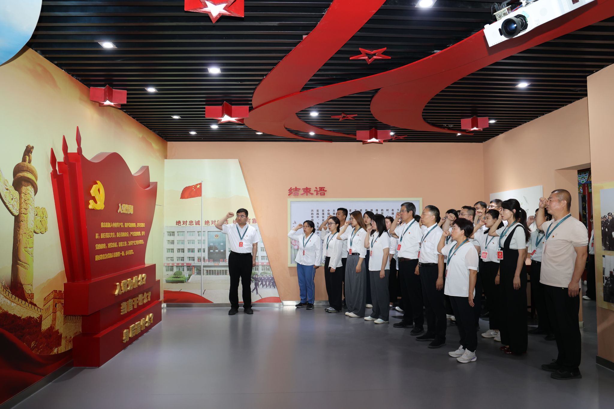 参观结束后,全体党员面向鲜红党旗庄严列队,高举右拳重温入党誓词。“我志愿加入中国共产党……”铿锵誓言回荡在高墙之内,表达了全体党员永葆忠诚干净担当政治本色的坚定决心。