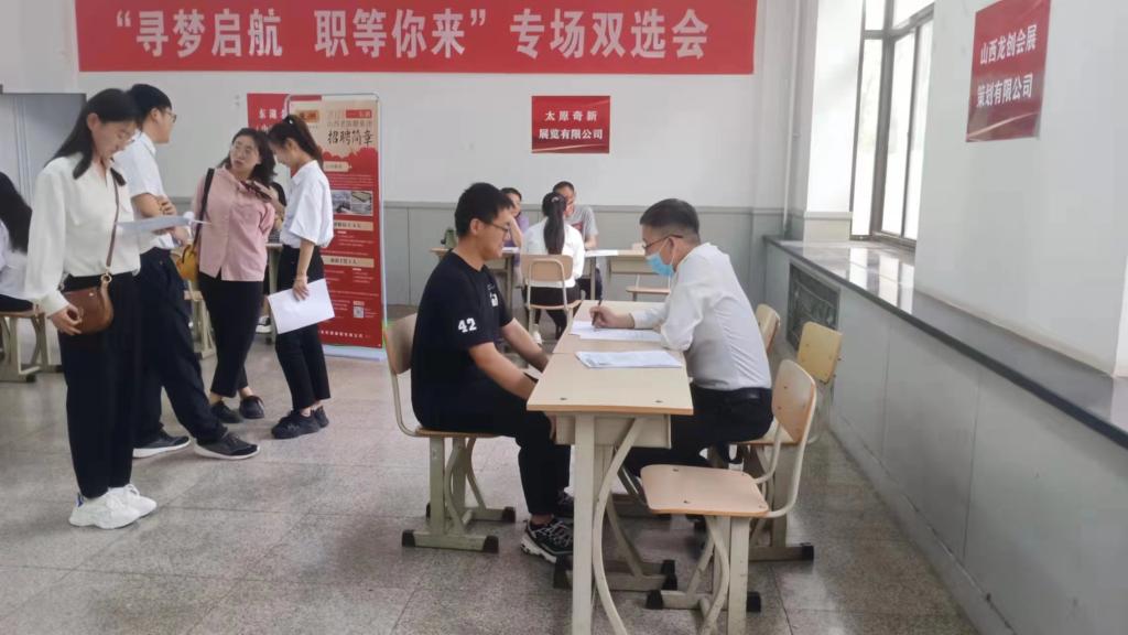 本次文化旅游学院专场双选会邀请了东湖老陈醋(山西)有限公司、太原奇新展览有限公司、山西龙创会展策划有限公司、太原榕行酒店管理有限公司、西山大厦5家企业来bat365选贤纳才,共计提供岗位32个,达成初步就业意向17个。