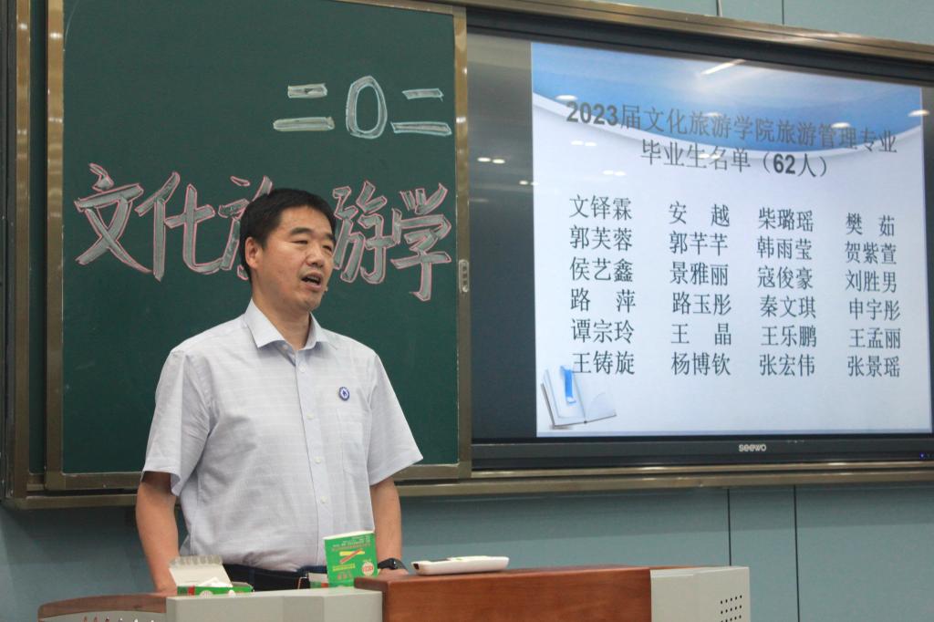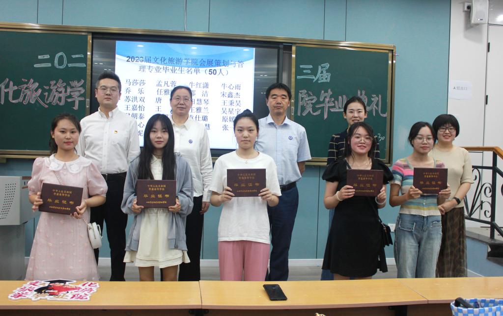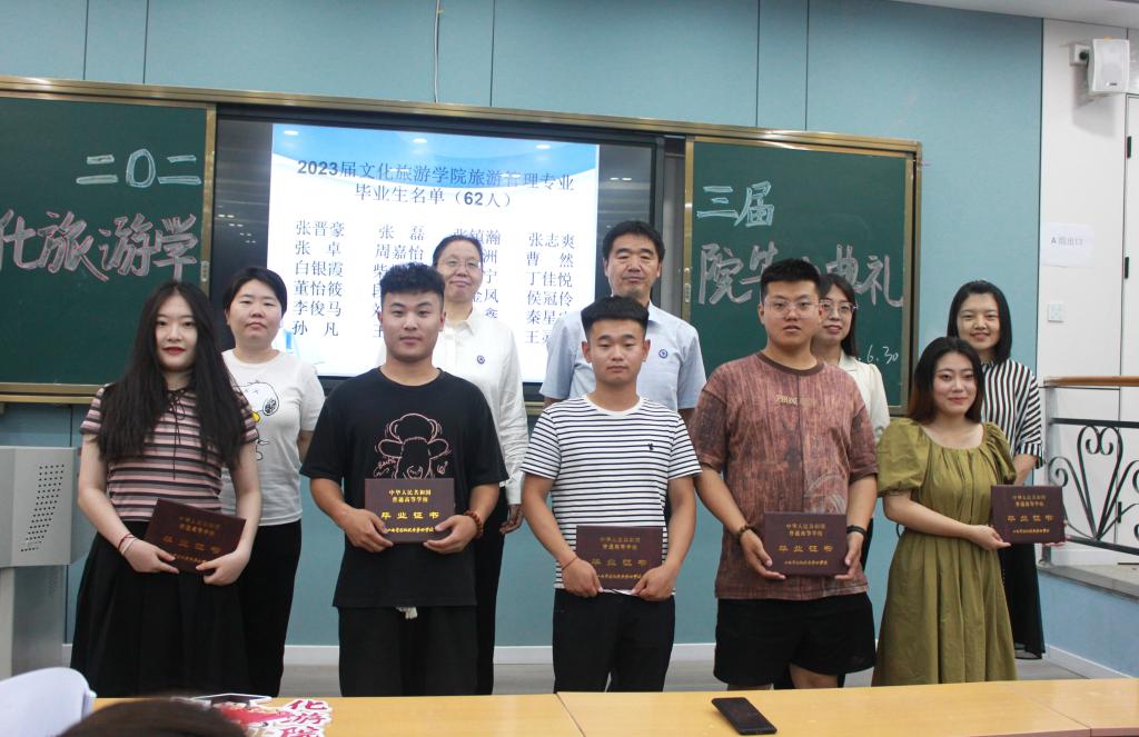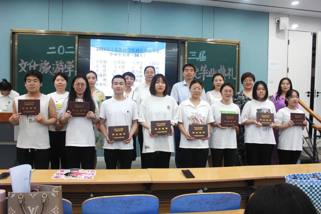 6月30日上午11:30,文化旅游学院在阶教105举办2023届毕业生毕业典礼,学院党总支负责人张卫、学院负责人谢红霞及全体任课教师、辅导员参加了本次毕业典礼,并为学院159名毕业生送上祝福。