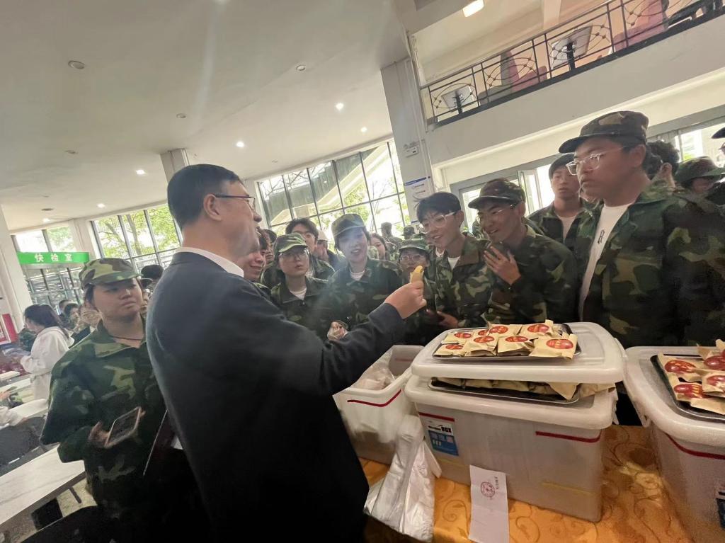 校党委书记秦华伟带领党委班子成员来到餐厅,把一块块月饼亲手送到同学们手中,为同学们送上节日祝福。他叮嘱同学们刻苦学习、奋勇拼搏,早日成才。同学们品尝着香甜可口的月饼,脸上洋溢着喜悦的笑容。