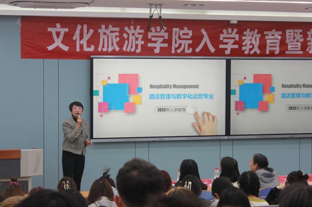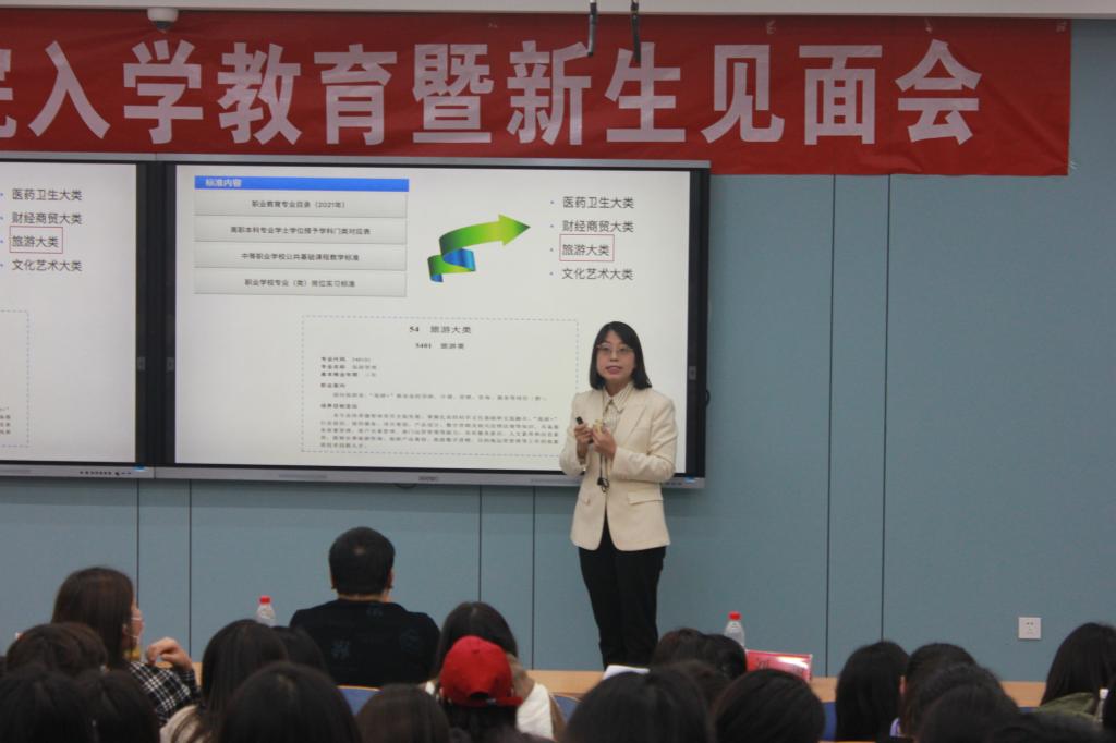 为帮助新生尽快熟悉校园、了解学院、更好地融入新的学习环境,10月12日下午,文化旅游学院在2号教学楼307教室举办“入学教育暨新生见面会”。文化旅游学院党总支书记张卫、院长谢红霞、会展策划与管理专业负责人乔一博、酒店管理与数字化运营专业负责人贺静、旅游管理专业教研室主任李武玲、分团委书记赵宝龄、辅导员马瑞和刘渊,学院2022级团学干部以及全体2023级新生参加了此次见面会。