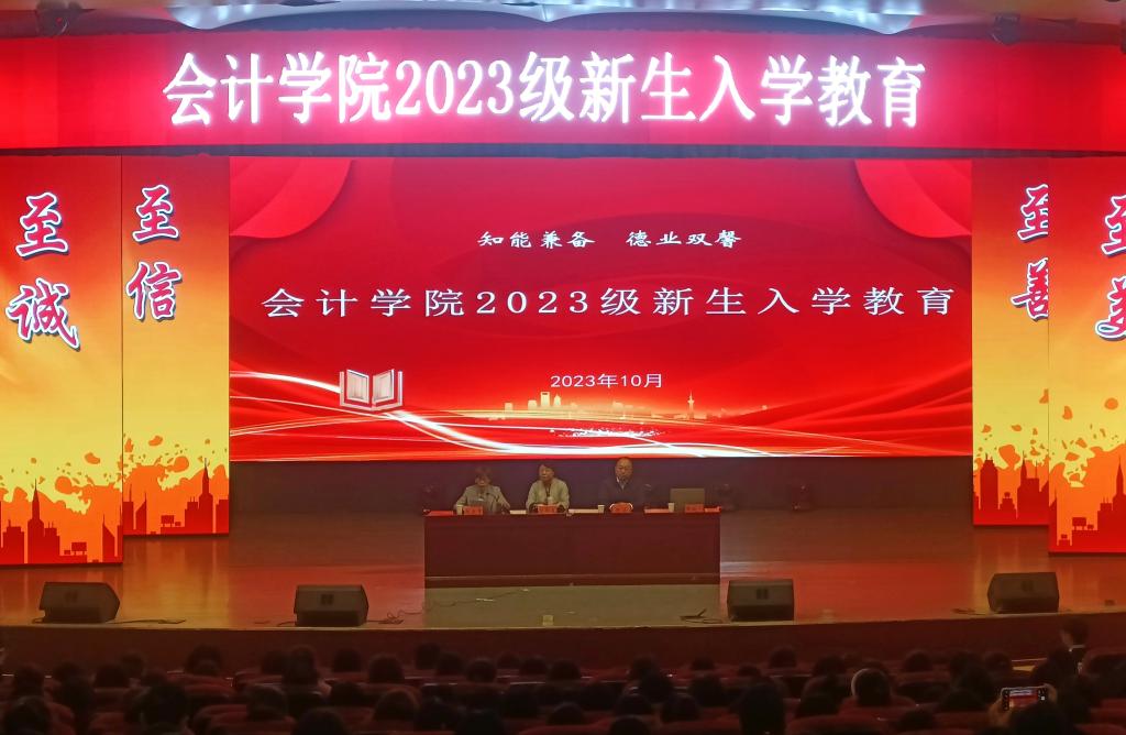 为促进学生德智体美劳全面发展,帮助新生更快地适应大学生活,充分了解学院和专业特色,加强专业认知,科学规划大学生涯,10月10日下午,会计学院在南院礼堂开展了2023级新生入学教育。会计学院党总支书记赵云、院长高翠莲、党总支副书记薛鹏飞、副院长赵爱萍、2023级班级辅导员以及全体新生参加了此次入学教育。