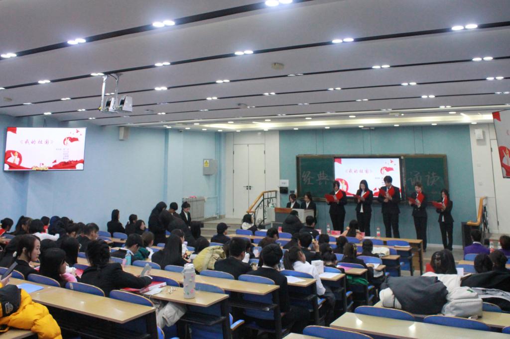 为推动团员青年学习贯彻习近平新时代中国特色社会主义思想主题教育走深走实,引导团员青年在青春的征程中“正能量饱满”“原动力丰沛”“奋斗路闪光”“爱国志激昂”,文化旅游学院分团委于11月27日晚7:00在阶教103教室举办了红色经典诵读比赛。文化旅游学院办公室主任闫强、分团委书记赵宝龄、辅导员马瑞、公共教学部教师薛慧出席大赛并担任评委。