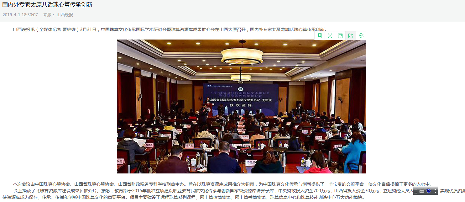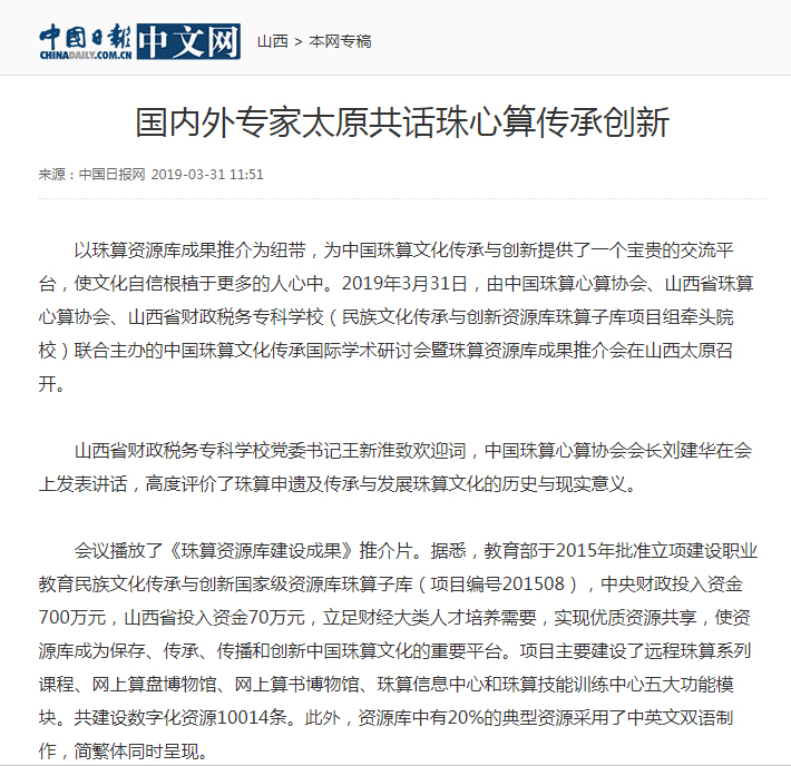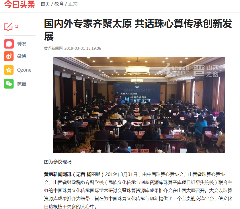 多家新闻媒体全方位报道bat365举办的中国珠算文化传承国际学术研讨会暨珠算资源库成果推介会盛况