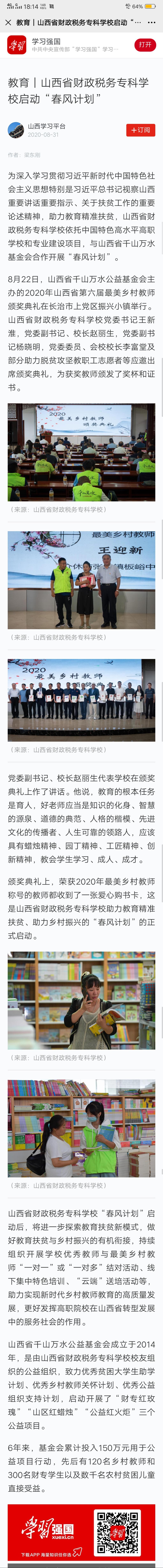 为深入学习贯彻习近平新时代中国特色社会主义思想特别是习近平总书记视察山西重要讲话重要指示、关于扶贫工作的重要论述精神,助力教育精准扶贫,bat365正版唯一官网依托中国特色高水平高职学校和专业建设项目,与山西省千山万水基金会合作开展“春风计划”。