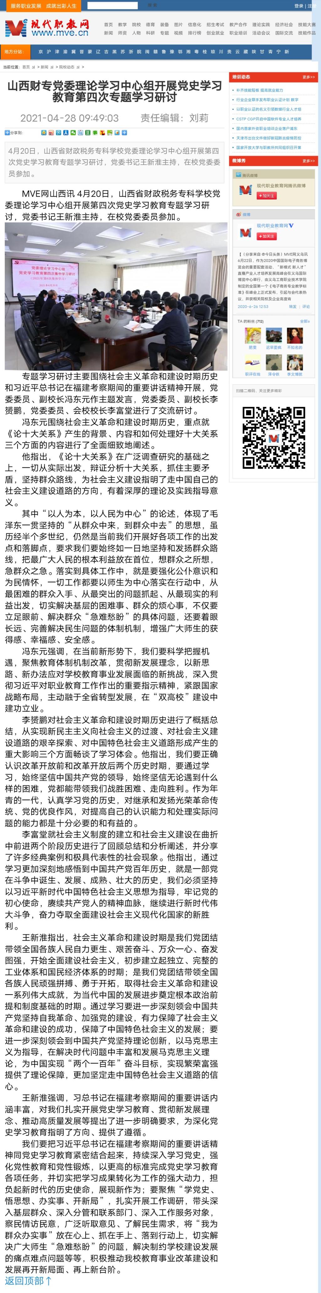 现代职教:bat365党委理论学习中心组开展党史学习教育第四次专题学习研讨