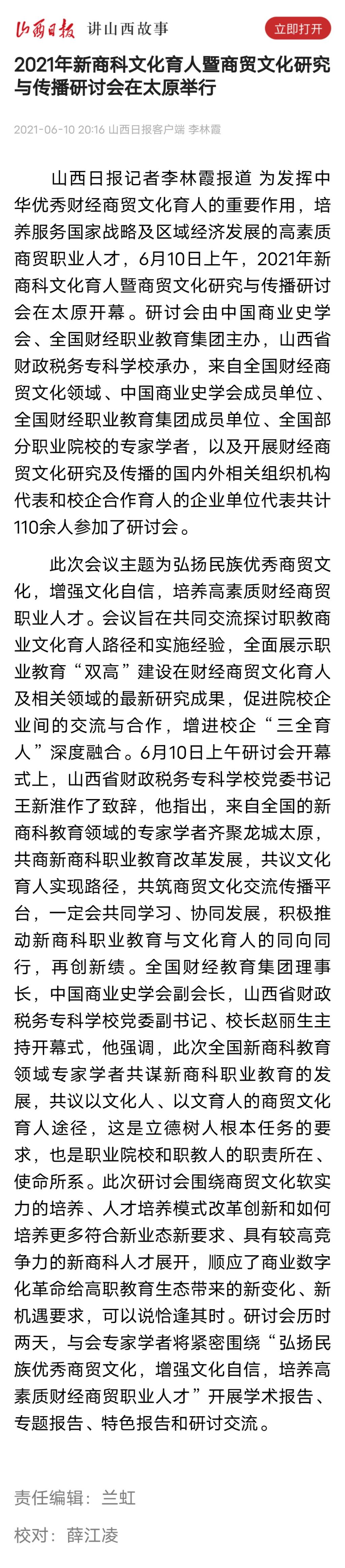 山西日报:2021年新商科文化育人暨商贸文化研究与传播研讨会在太原举行