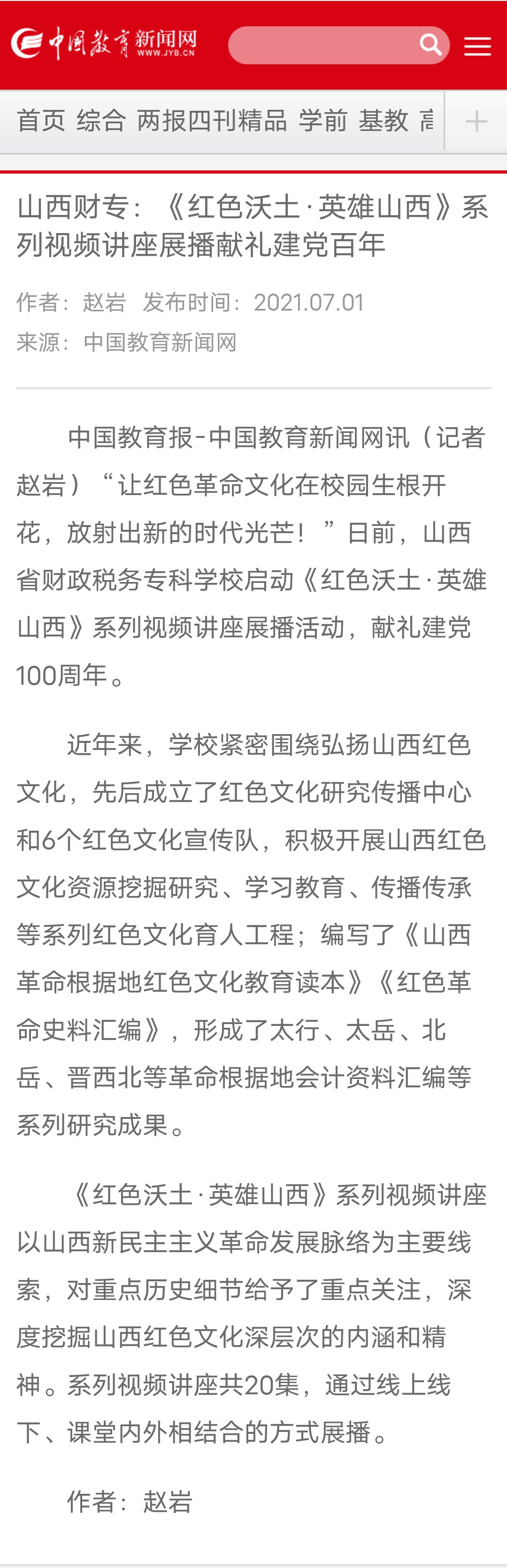 中国教育新闻网:bat365《红色沃土·英雄山西》系列视频讲座展播献礼建党百年
