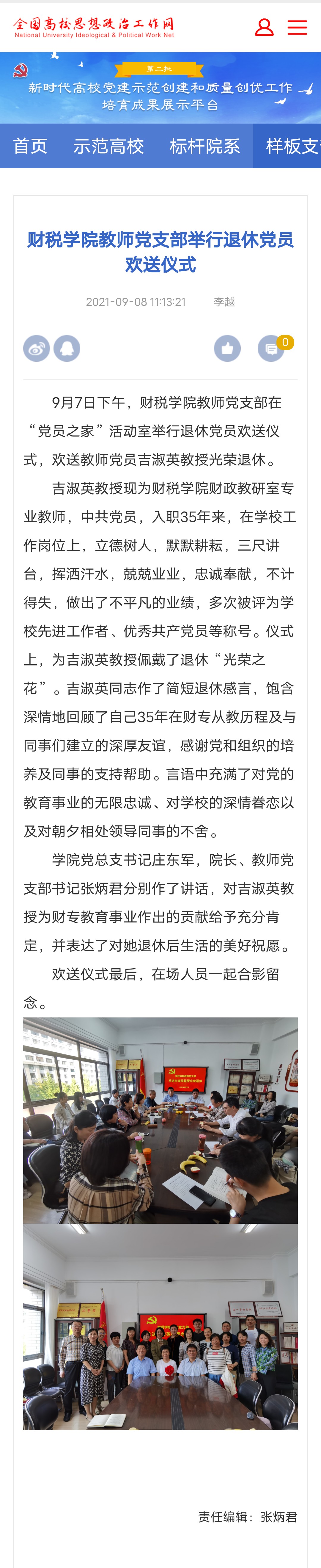 高校思政网:财税学院教师党支部举行退休党员欢送仪式
