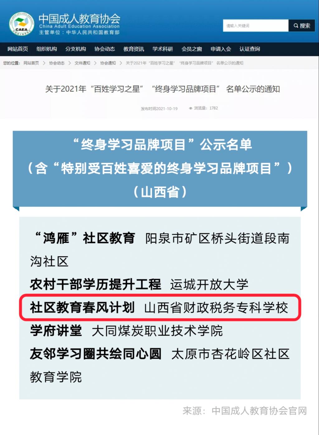 中国成人教育协会:bat365入选2021年“终身学习品牌项目”