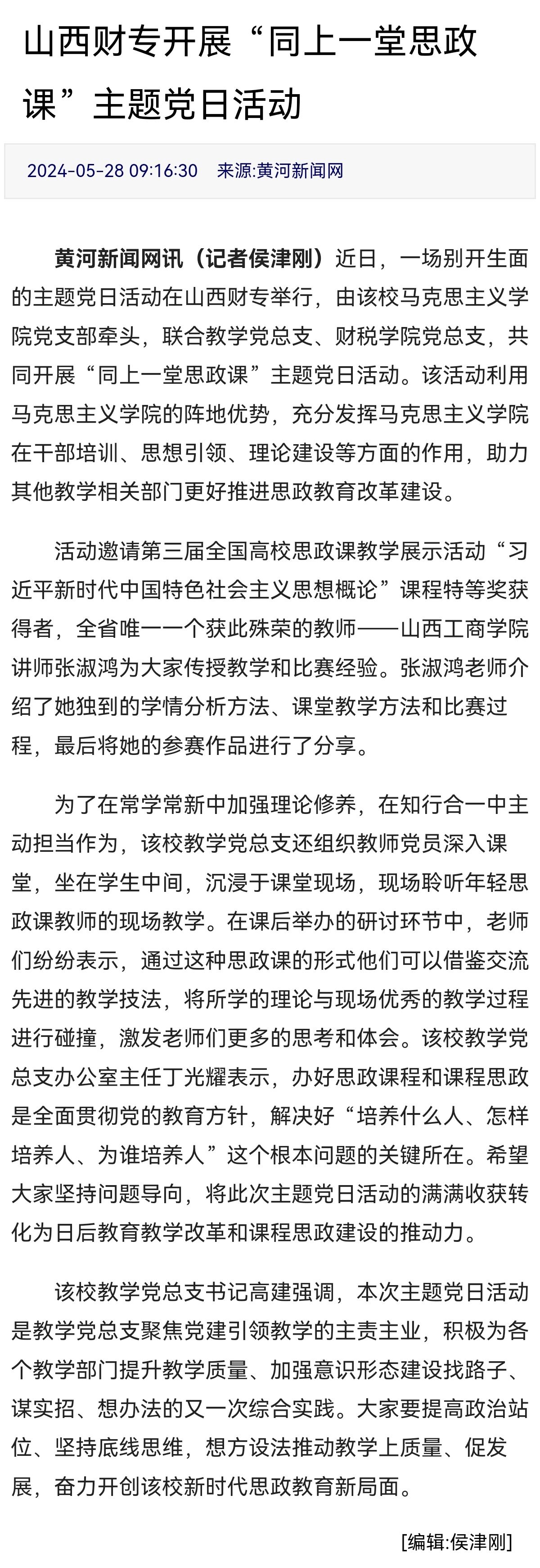 黄河新闻网讯(记者侯津刚)近日,一场别开生面的主题党日活动在bat365正版唯一官网举行,由该校马克思主义学院党支部牵头,联合教学党总支、财税学院党总支,共同开展“同上一堂思政课”主题党日活动。该活动利用马克思主义学院的阵地优势,充分发挥马克思主义学院在干部培训、思想引领、理论建设等方面的作用,助力其他教学相关部门更好推进思政教育改革建设。