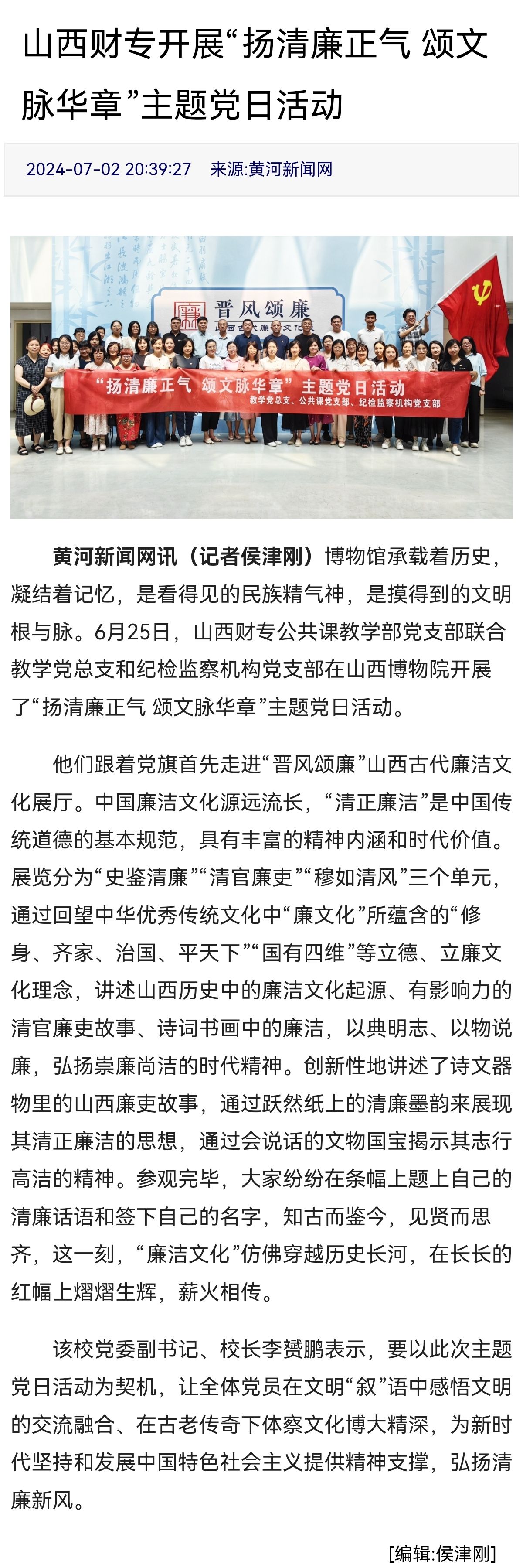 黄河新闻网:bat365开展“扬清廉正气 颂文脉华章”主题党日活动