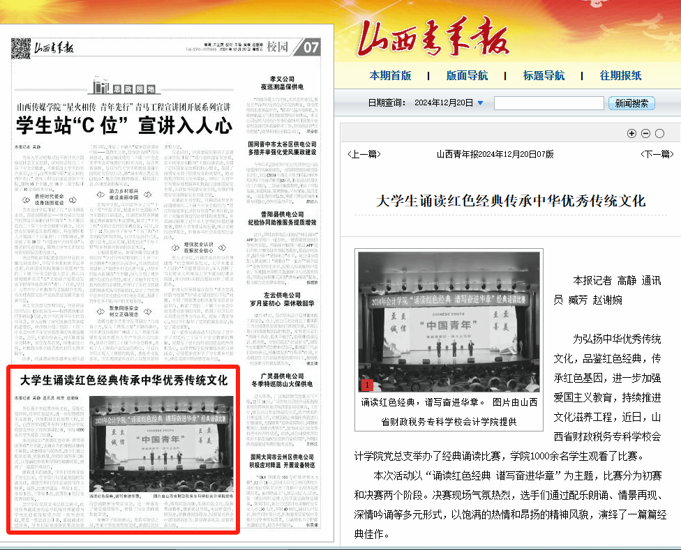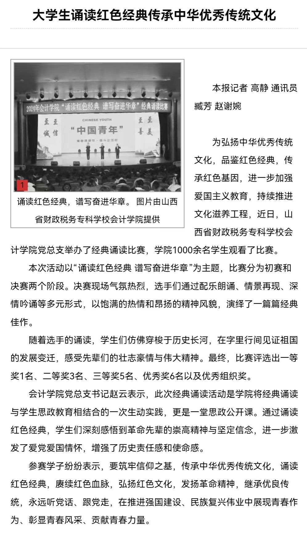 山西青年报:大学生诵读红色经典传承中华优秀传统文化