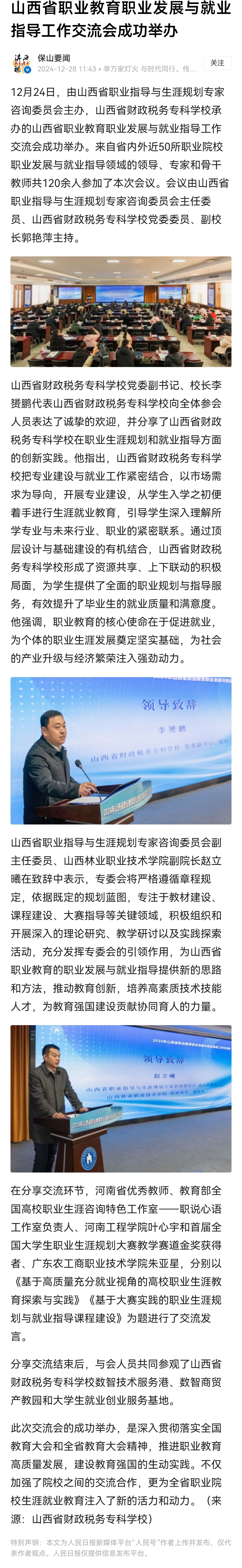 人民号:山西省职业教育职业发展与就业指导工作交流会成功举办