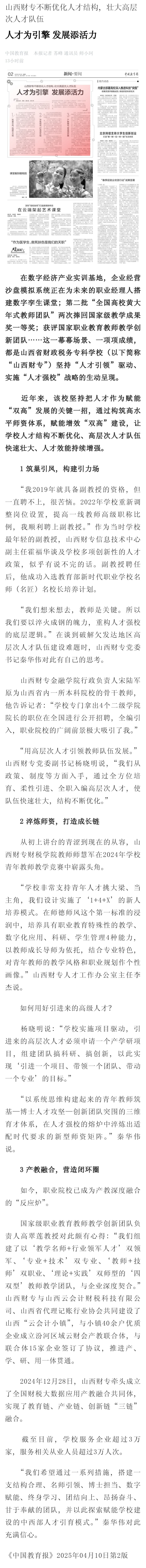 中国教育报:bat365正版唯一官网不断优化人才结构,壮大高层次人才队伍 “人才为引擎 发展添活力”