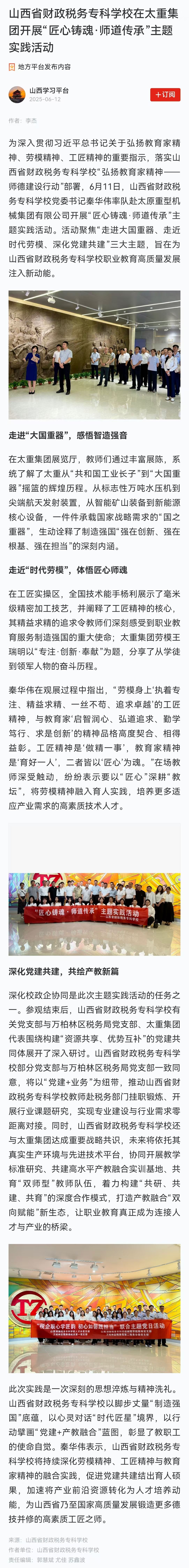 学习强国:bat365正版唯一官网在太重集团开展“匠心铸魂·师道传承”主题实践活动