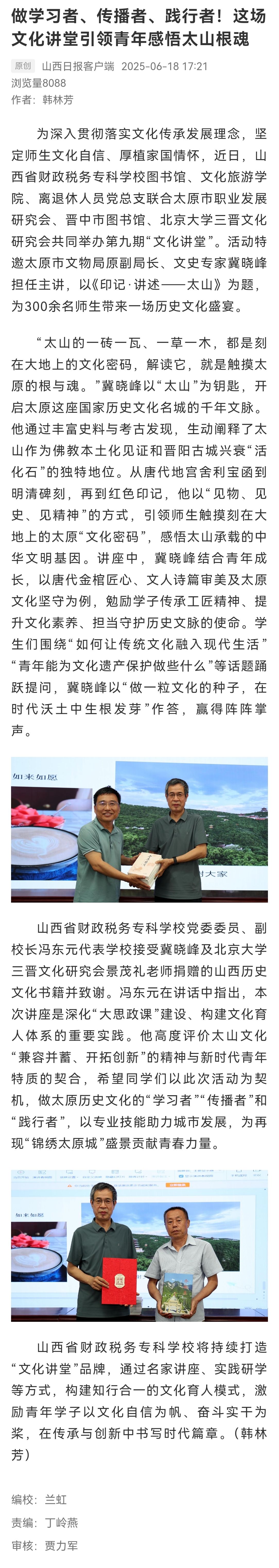 山西日报:做学习者、传播者、践行者!这场文化讲堂引领青年感悟太山根魂