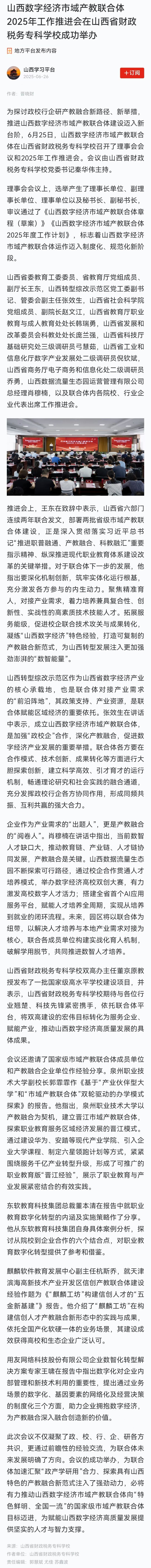学习强国:山西数字经济市域产教联合体2025年工作推进会在bat365正版唯一官网成功举办