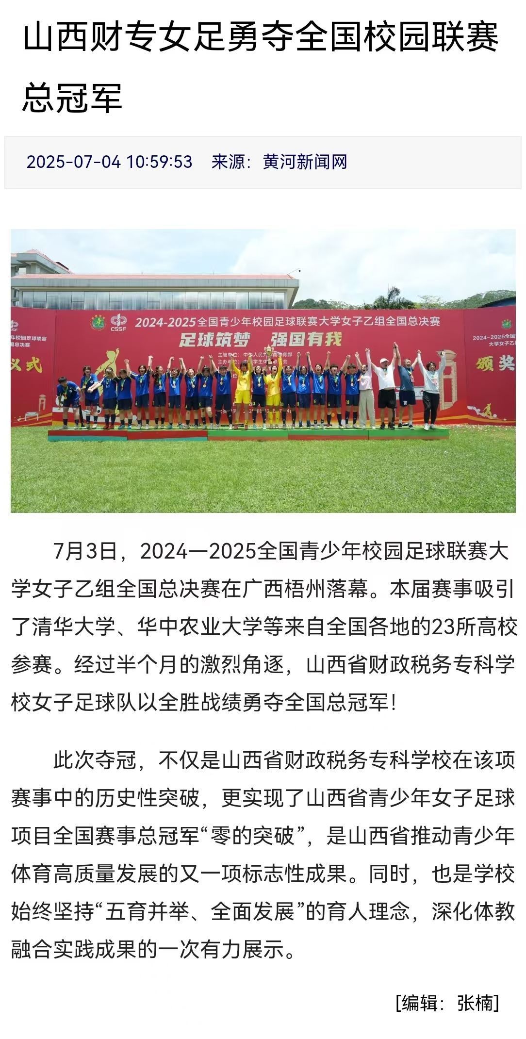 黄河新闻网:bat365正版唯一官网女足勇夺全国校园联赛总冠军